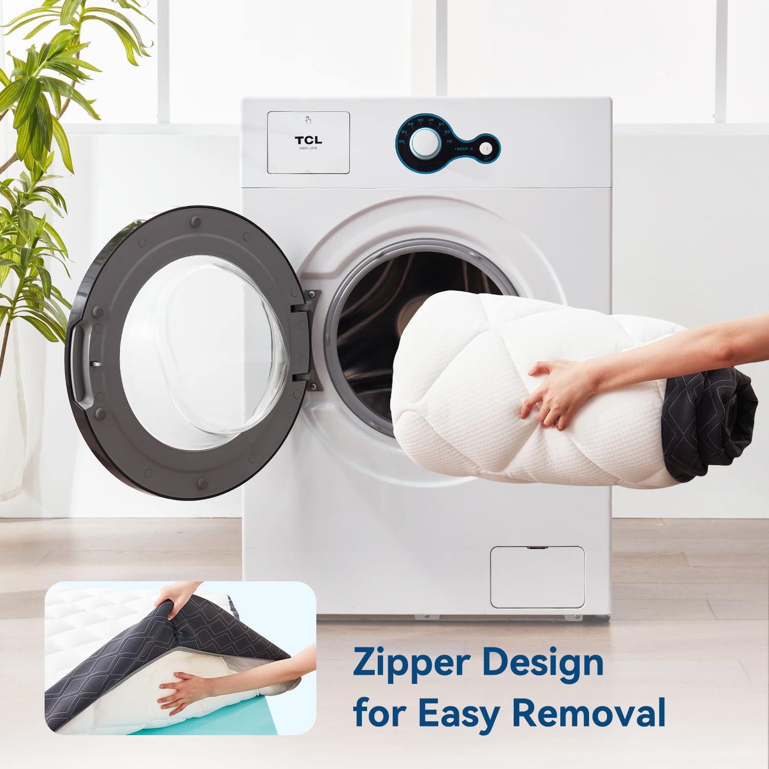 - 【Breathable and Cool, Making Sleep More Comfortable】TERISTE mattress pillowtop layer is made of breathable bamboo fiber fabric (38% bamboo viscose and 62% polyester), it’s filled with 3D snow down alternative filling, which promotes air circulation and keeps you cool and comfortable all night long. Whether it’s a hot summer day or a cold winter night, it provides optimal temperature regulation to ensure a restful sleep.