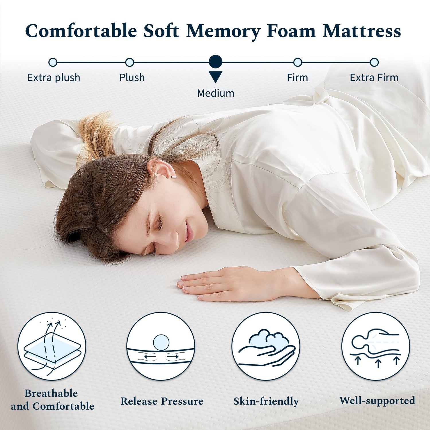 UACEO Queen Mattress, 8 Inch Memory Foam Mattress in a Box, Fiberglass Free Queen Size Mattresses for Pressure & Pain Relief, Soft and Comfortable