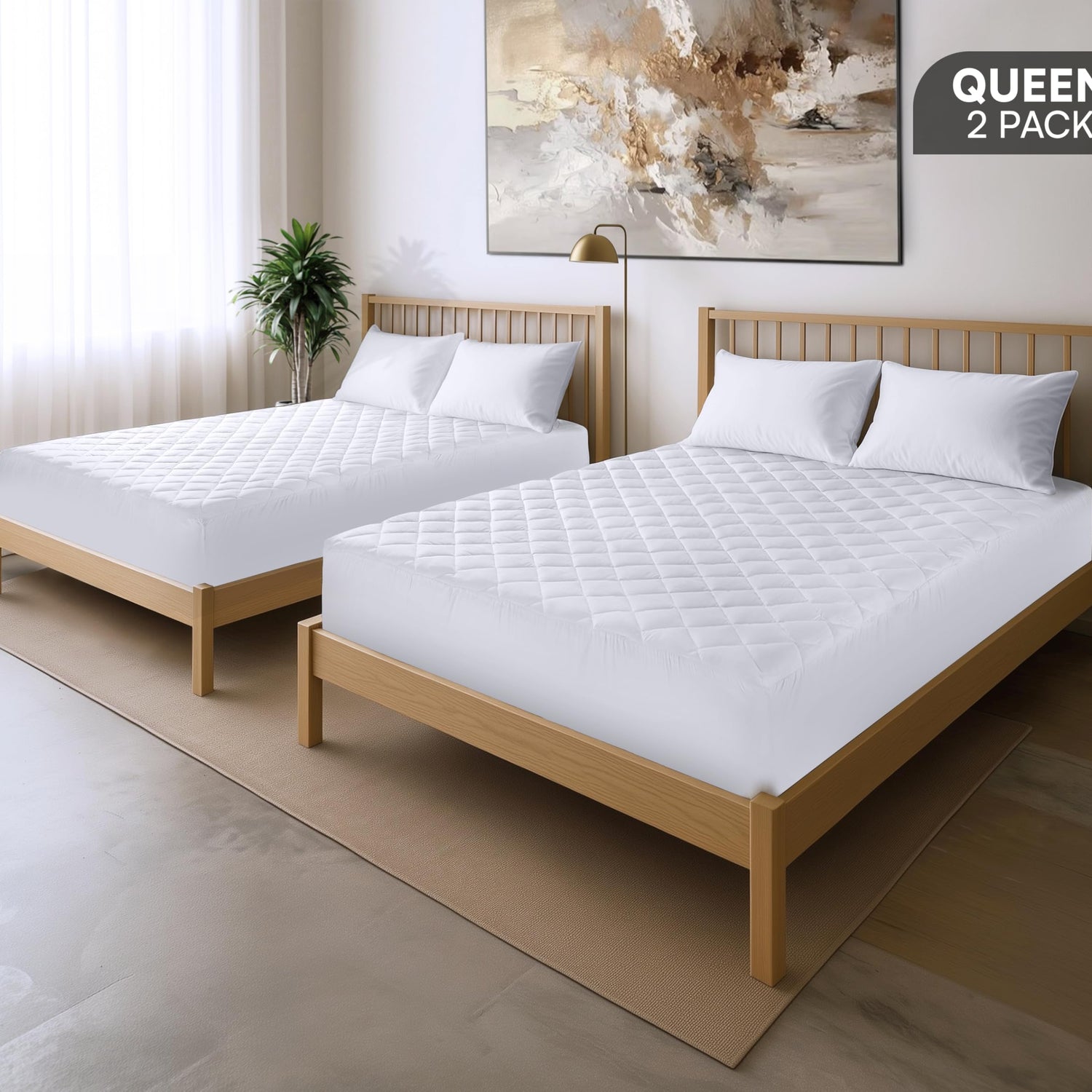 Utopia Bedding Queen 2 Pack Quilted Fitted Mattress Pad, Queen Size, Elastic Fitted Mattress Topper Protector and Cover Stretches up to 16 Inches Deep, Machine Washable (White)