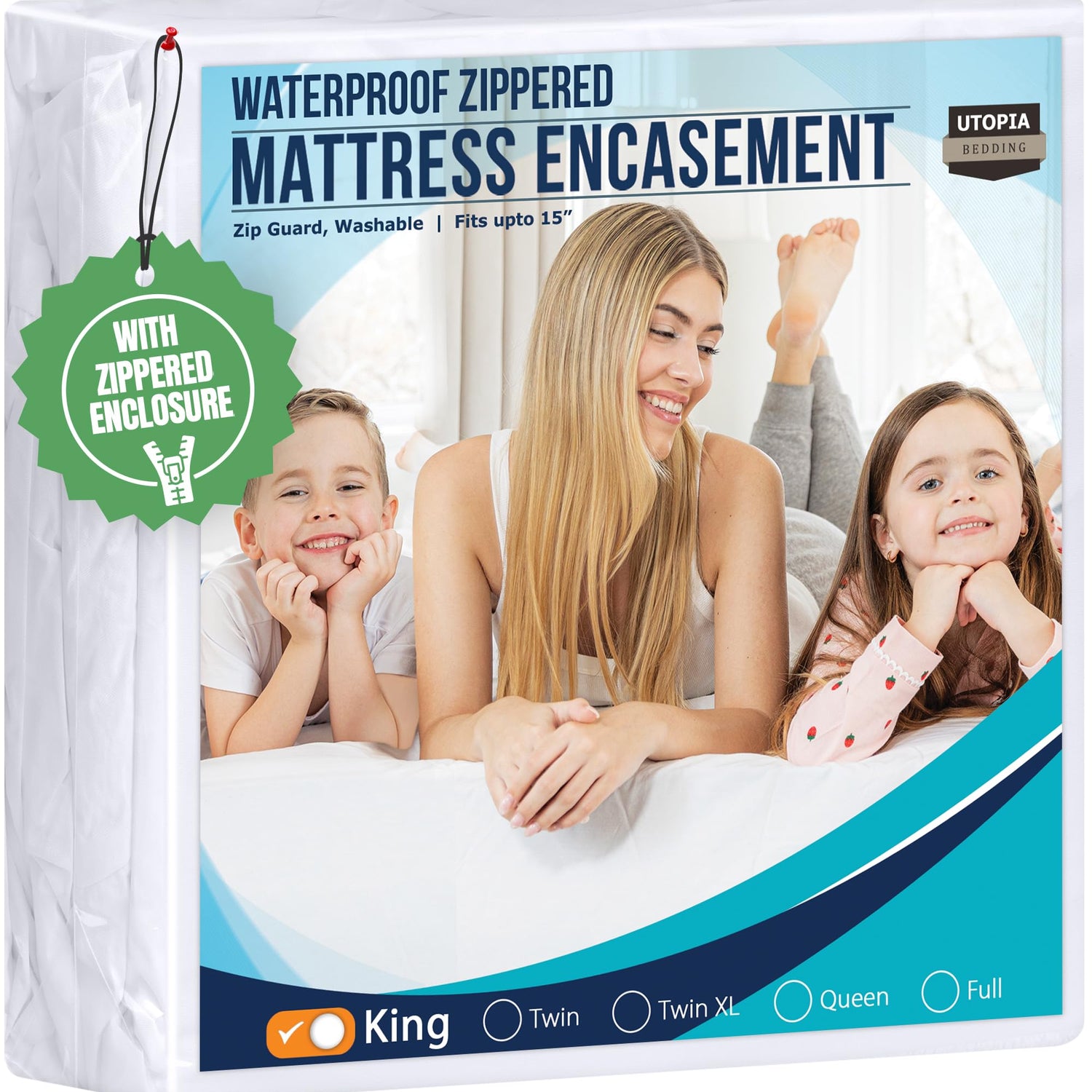 Utopia Bedding Waterproof Mattress Protector King Size, Zippered Mattress Encasement Bed Bug and Dust Mite Proof, Absorbent Six-Sided Mattress Cover