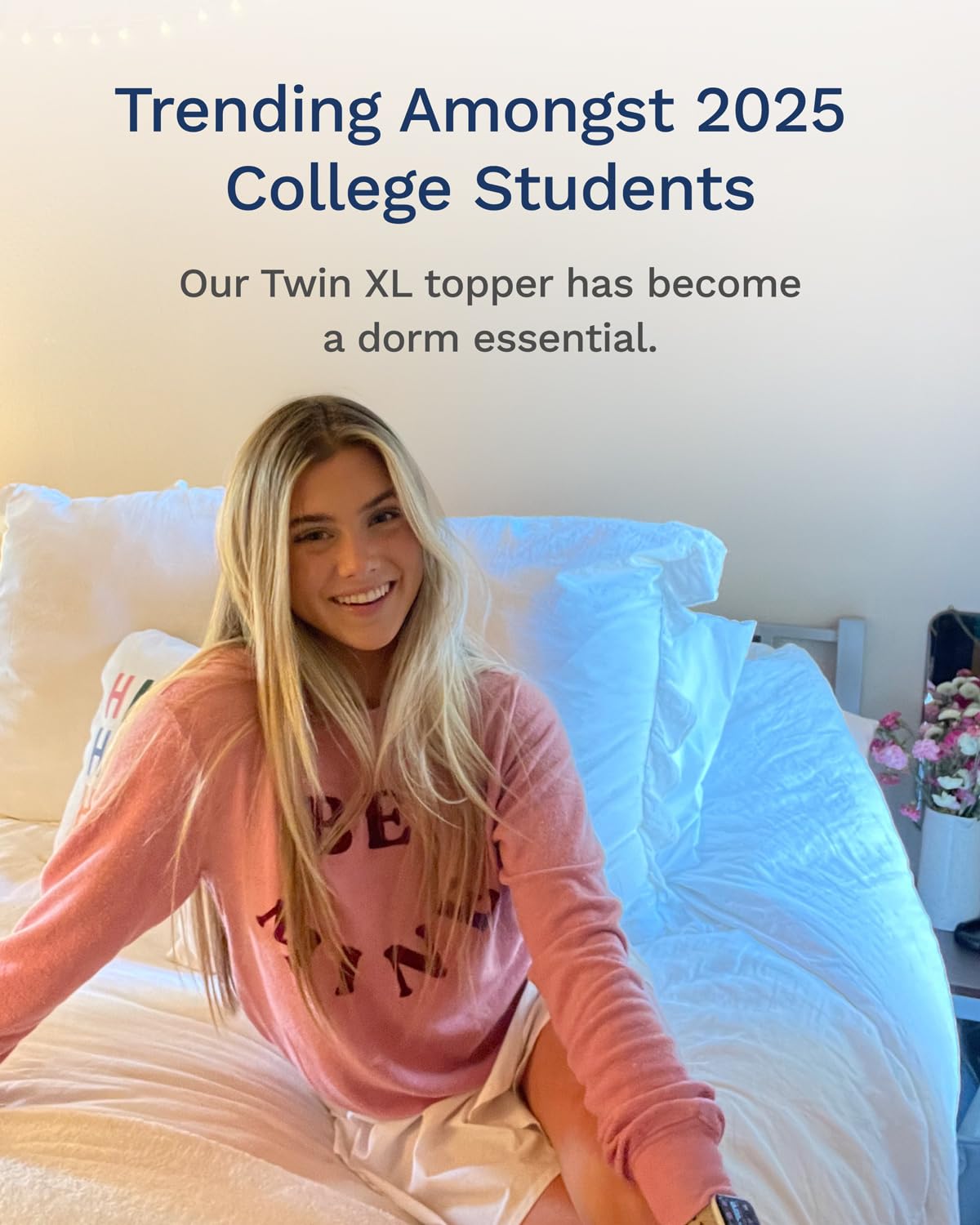 - Designed for College Life – Secure Fit & Easy Maintenance: The bed is a college dorm's comfort hub—whether you’re sleeping, studying, or lounging. The Viscosoft Hybrid Lux Twin XL topper stays securely in place with an 18-inch skirt and reinforced elastic, preventing slipping and bunching on dorm mattresses. No more constantly adjusting your topper—just a snug, supportive fit that stays put. Plus, the removable, machine-washable cover makes keeping your sleep space clean nearly effortless.