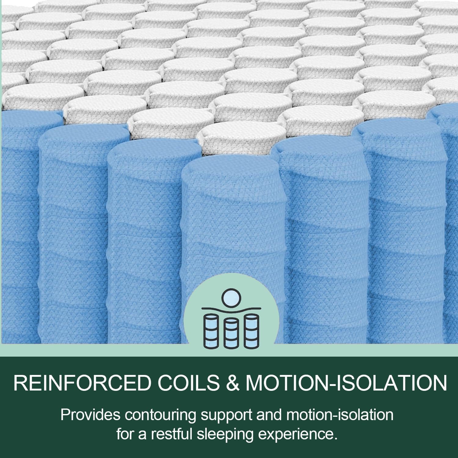 - 【Silent Sleep, Motion Isolated】: Enjoy a peaceful night's sleep without disturbances. Our medium firm queen hybrid mattress features individual pocket springs that minimize noise and motion transfer, making it perfect for couples sharing a bed. Rest assured that you will stay undisturbed throughout the night for a truly serene sleep experience.