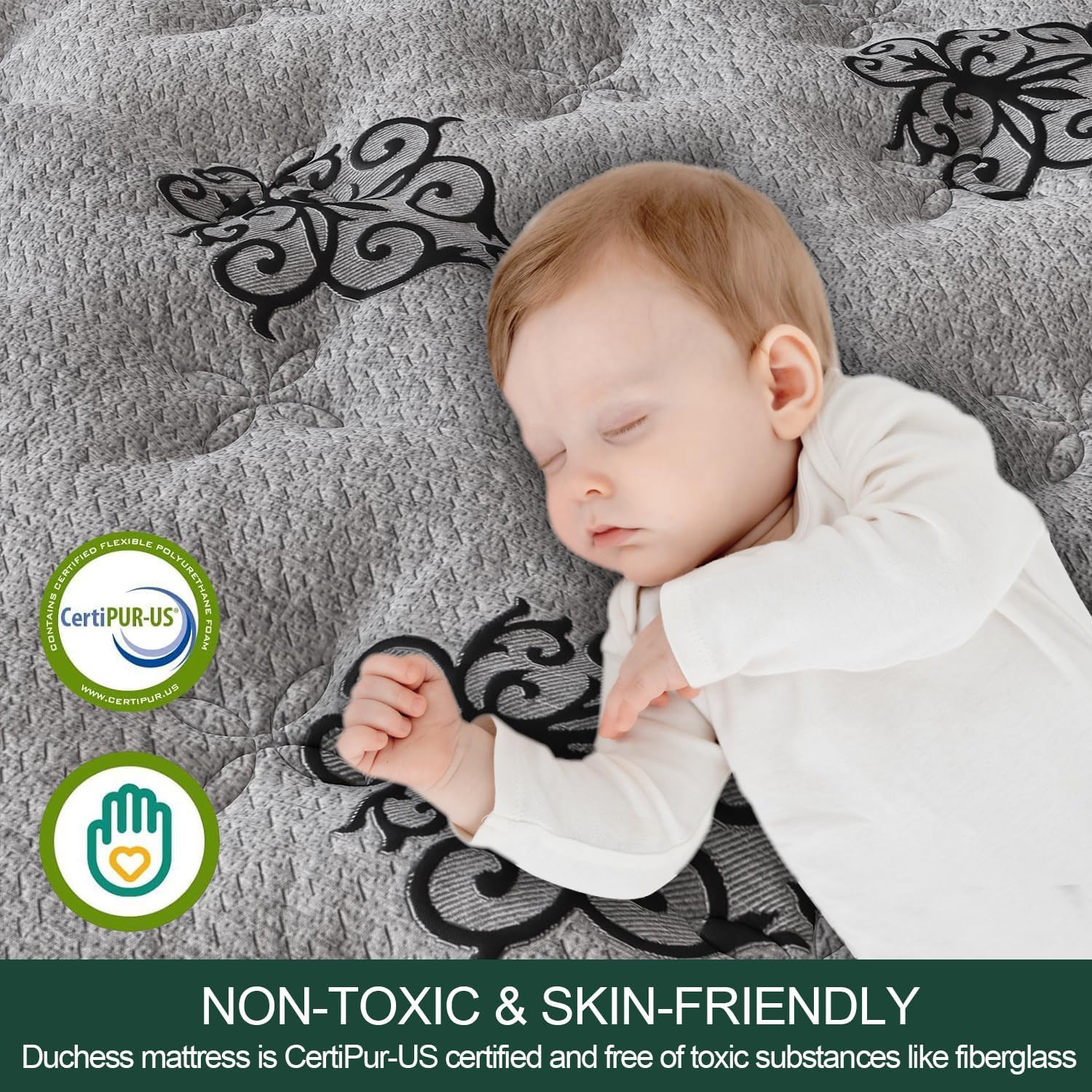 - 【Elevate Your Sleep Experience】: Upgrade your sleep sanctuary with our Viscountess hybrid queen mattress, certified by CertiPUR US and Oeko-Tex Standard 100 for unparalleled safety and durability. The combination of traditional spring support and luxurious foam layers in this mattress creates a firm sleeping surface that effectively aligns the spine and evenly distributes weight, reducing pain and discomfort for a restful night's sleep.