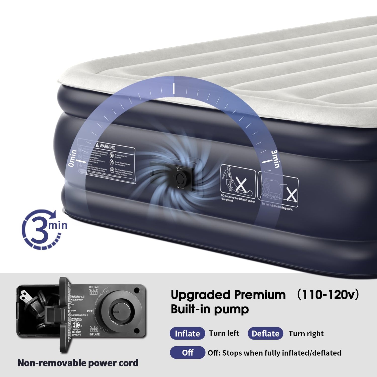 • 【Worry-Free After-Sales】We are committed to providing excellent after-sales service. Each full air bed mattress with a built-in pump is quality inspected by our quality inspection team. If you are not happy with the full inflatable mattress you receive, don’t hesitate. Reach out us immediately,and we will work with you to find an effective solution promptly, aiming to ensure your peace of mind