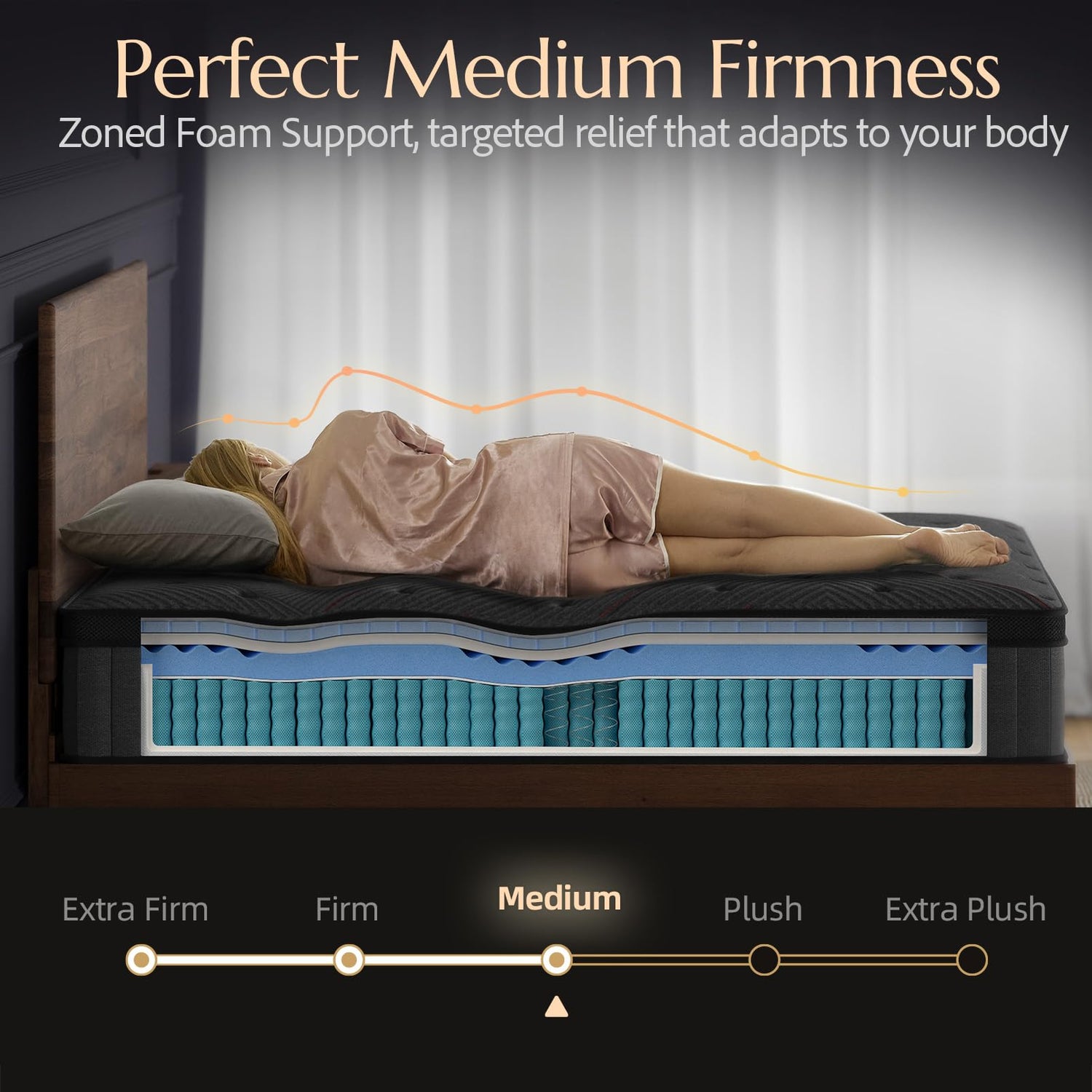 • 【Undisturbed Sleep System】Individually wrapped coils in our medium firm mattress in a box queen size absorb movement to reduce partner disturbance for uninterrupted sleep
