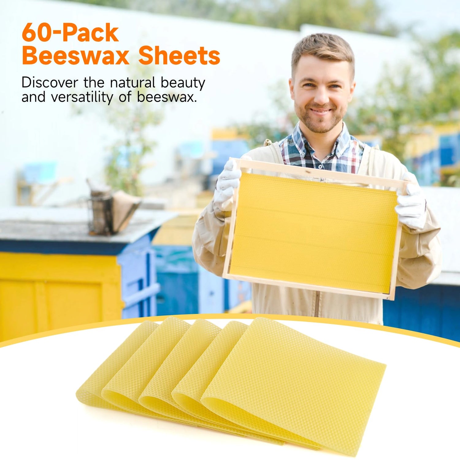 60-Pack Beeswax Sheets, 16-1/3 inch x 7-2/3 inch,Beehive Wax Foundation, Beeswax Foundation Sheet, Beeswax for Candle Making Beekeeping