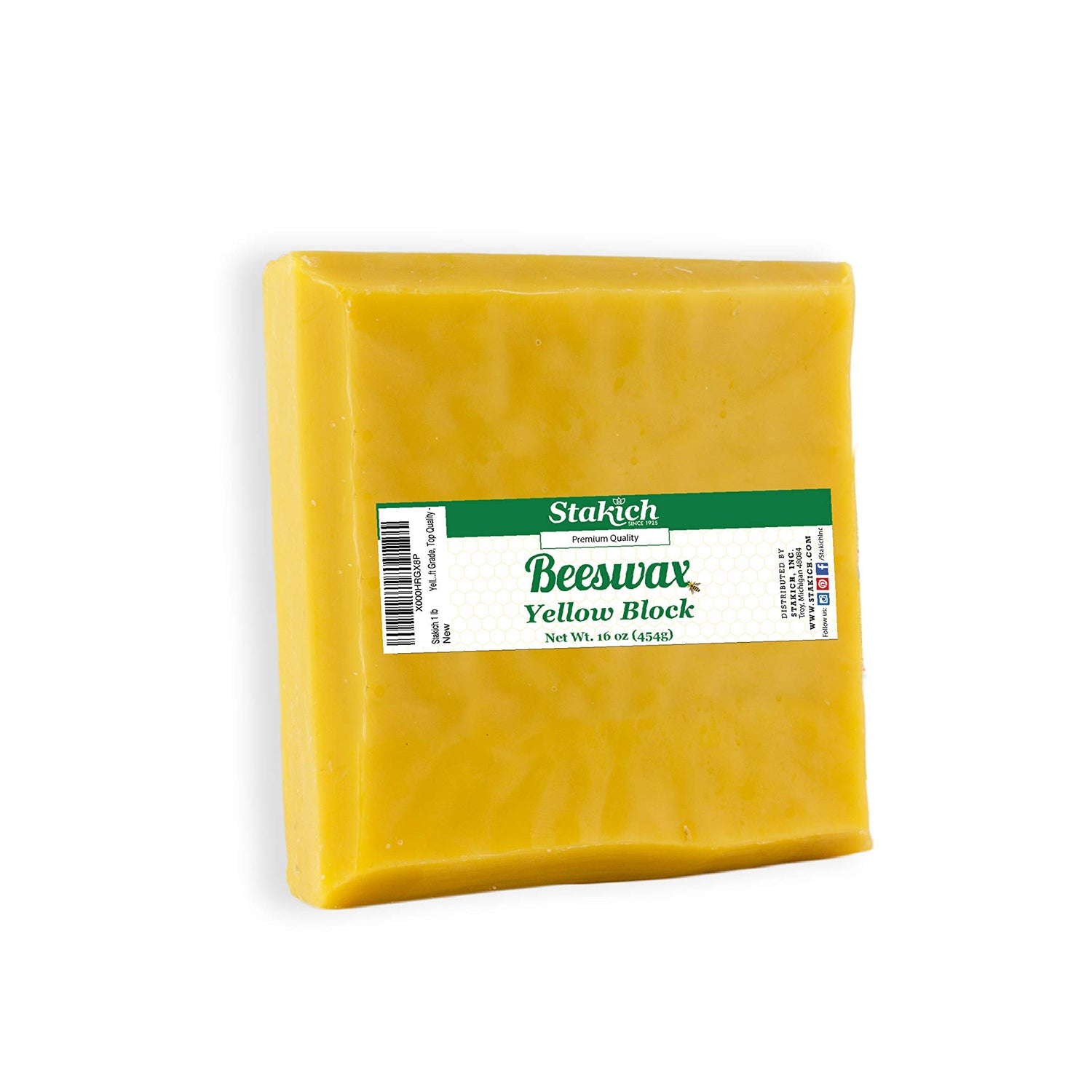 Stakich Yellow Beeswax Block - Natural, Triple Filtered - 1 Pound, Honey Scent