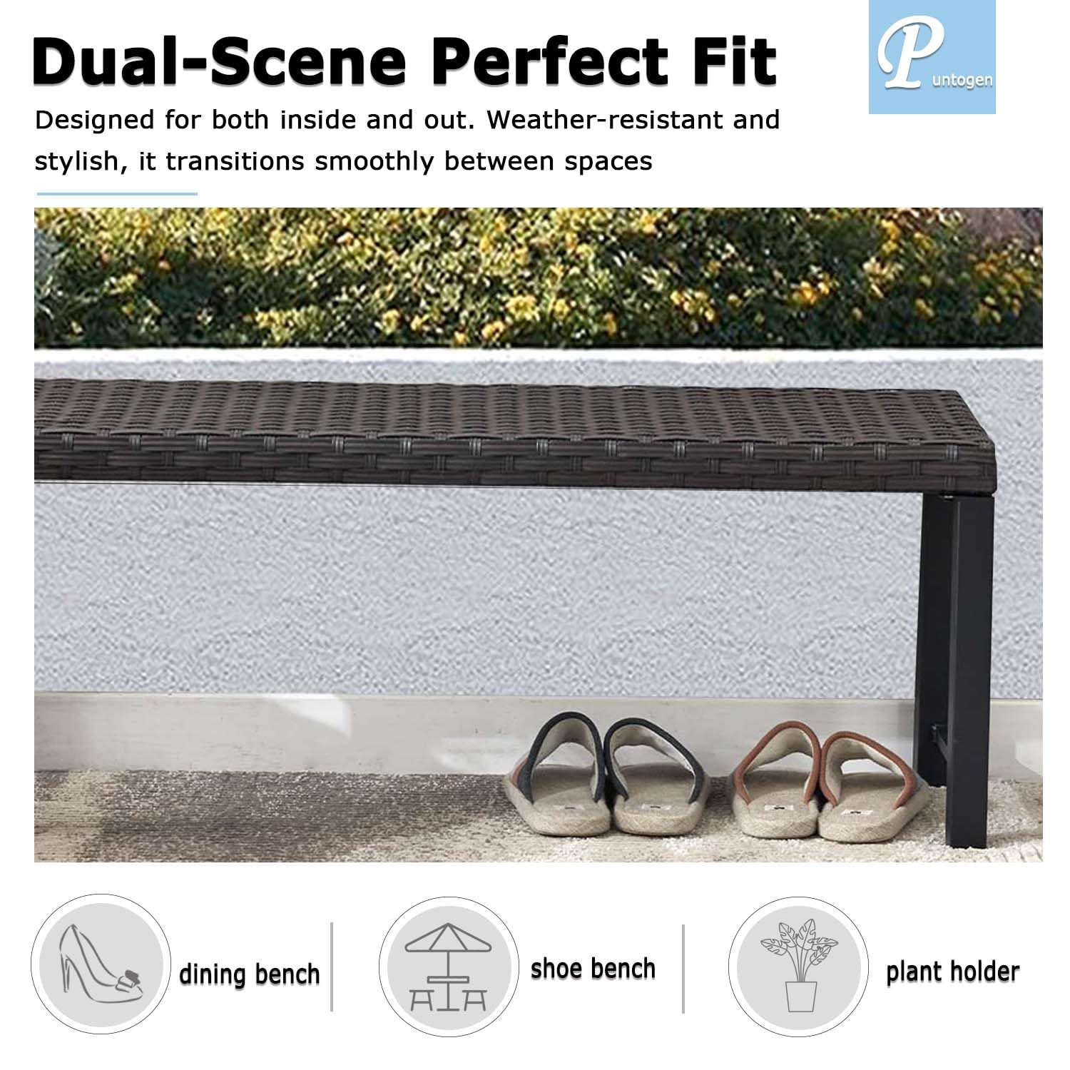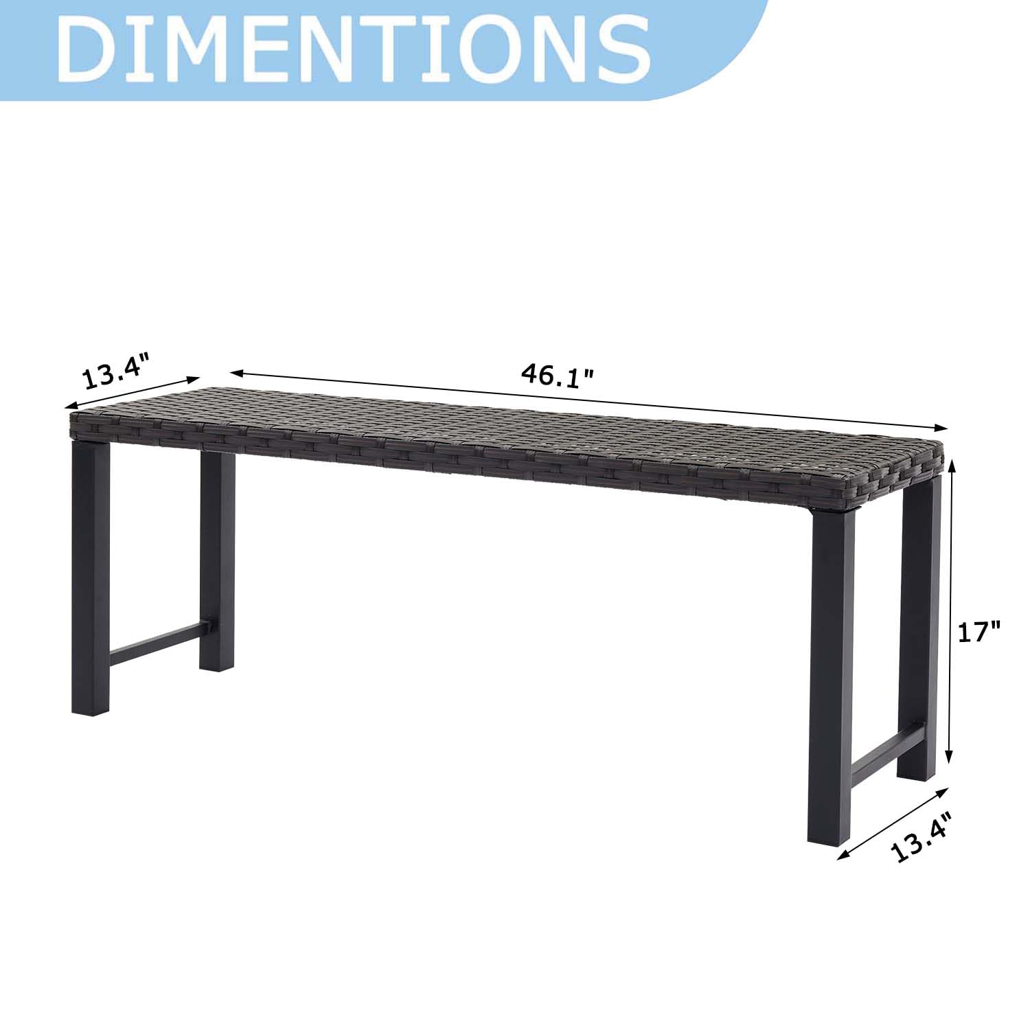 - 【Durable Wicker Seat】Choose breathable woven rattan seat— designed to drain water quickly and prevent rust on this backless outdoor bench metal frame