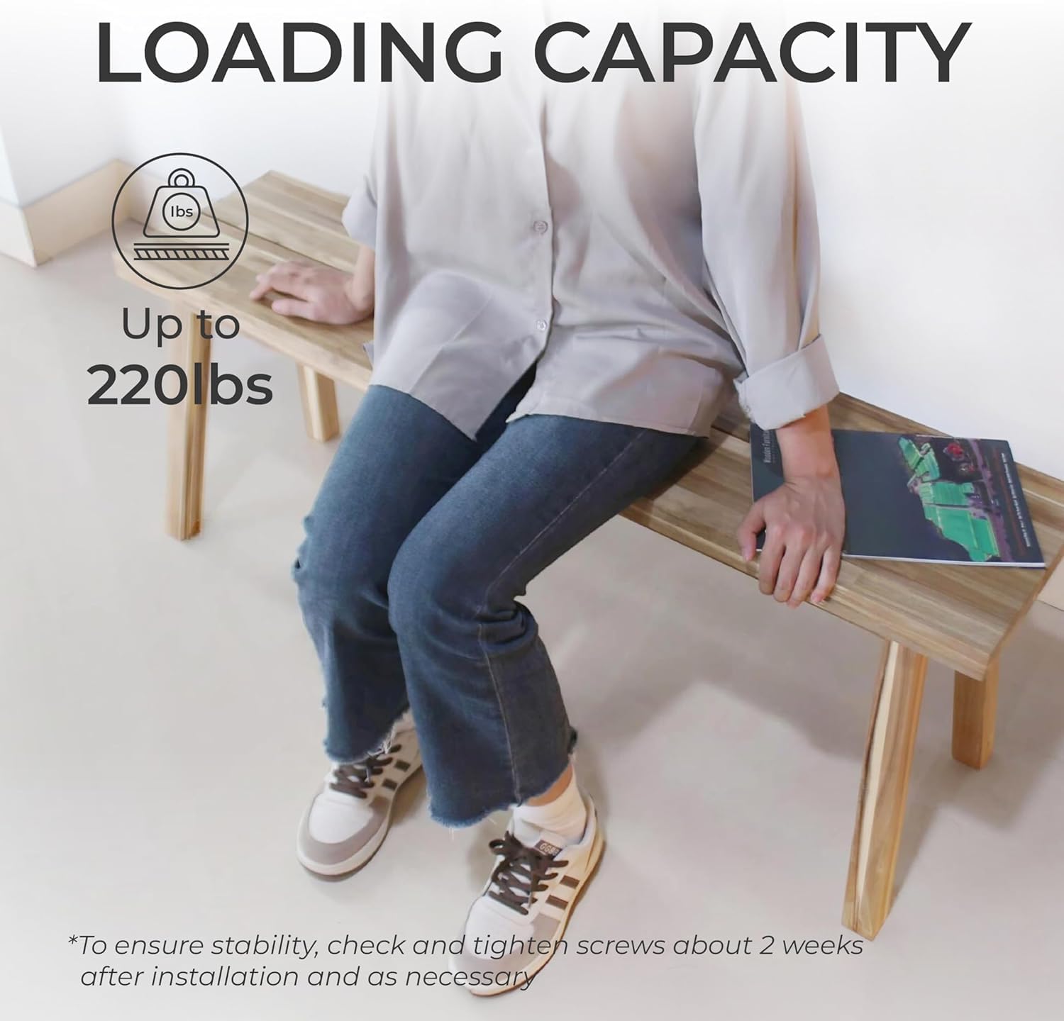 • Strong and sturdy, this wooden bench provides reliable support while maintaining a lightweight, easy-to-move structure.