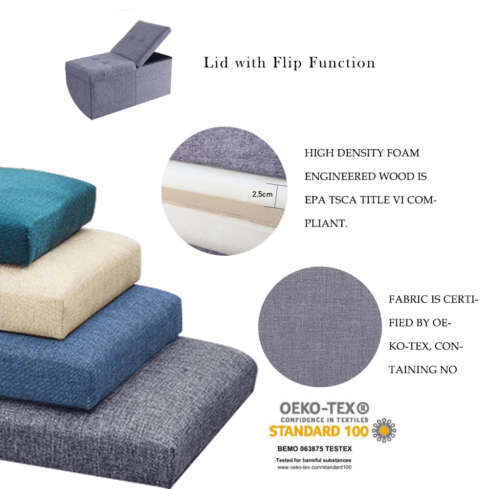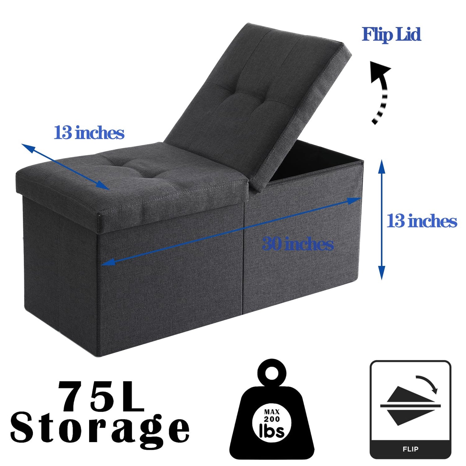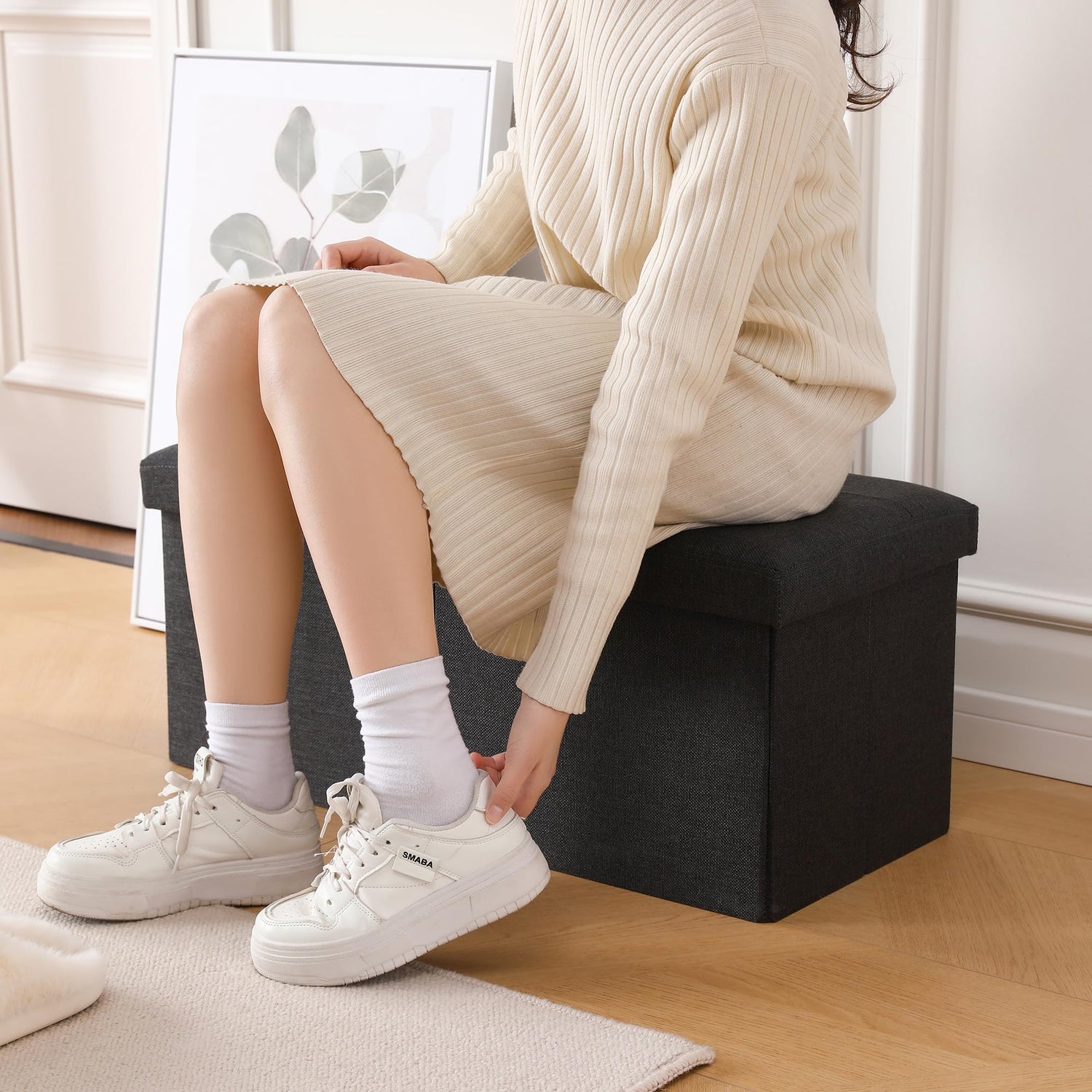 CUYOCA Storage Ottoman Bench Foldable Seat Footrest Shoe Bench End of Bed Storage with Flipping Lid, 75L Storage Space, 30 inches Linen Fabric Black