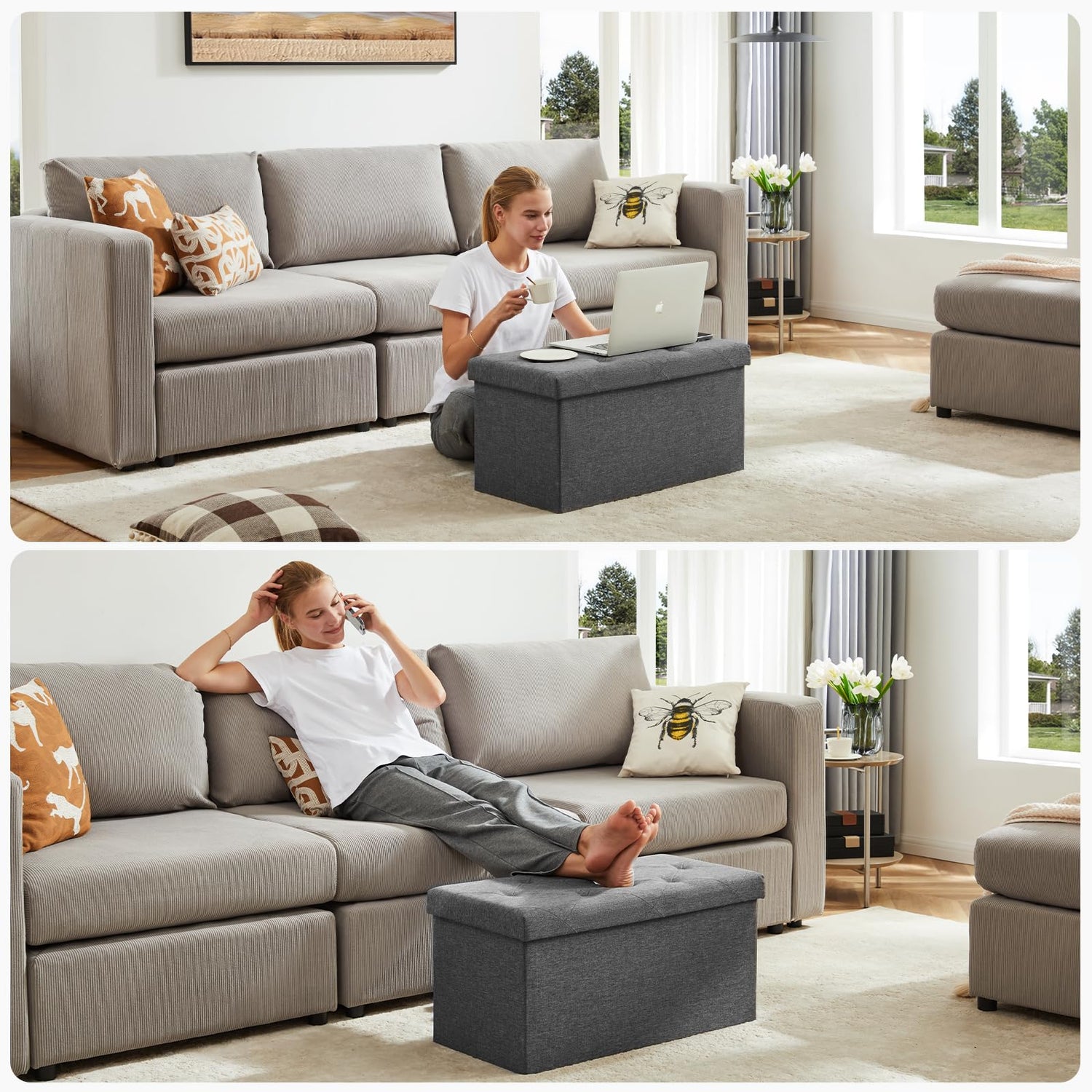 • 【Sturdy & Comfortable】: This storage ottoman bench is supported by thick MDF panels for excellent stability. The top is filled with high-density foam and covered with stylish gray linen fabric, ensuring both comfort and breathability. Ottoman bench can support a static weight of up to 660 pounds.