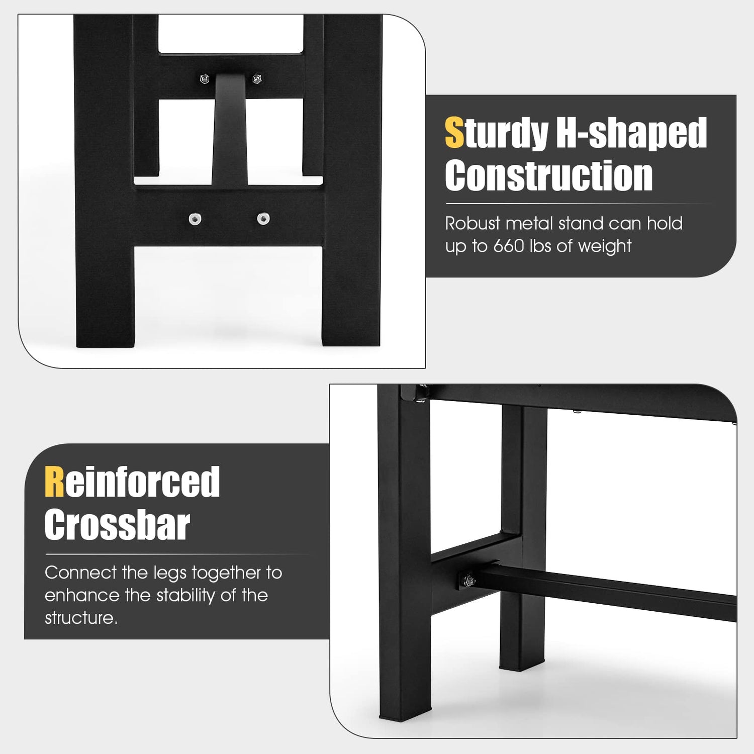 • 660 Lbs Weight Capacity: Reinforced by a sturdy H-shaped construction on the bottom of the bench, this frame of the bench features sturdiness and stability, this robust metal stand can hold up to 660 lbs of weight. Additionally, the reinforced crossbar bench leg Connect the legs together to enhance the stability of the structure.