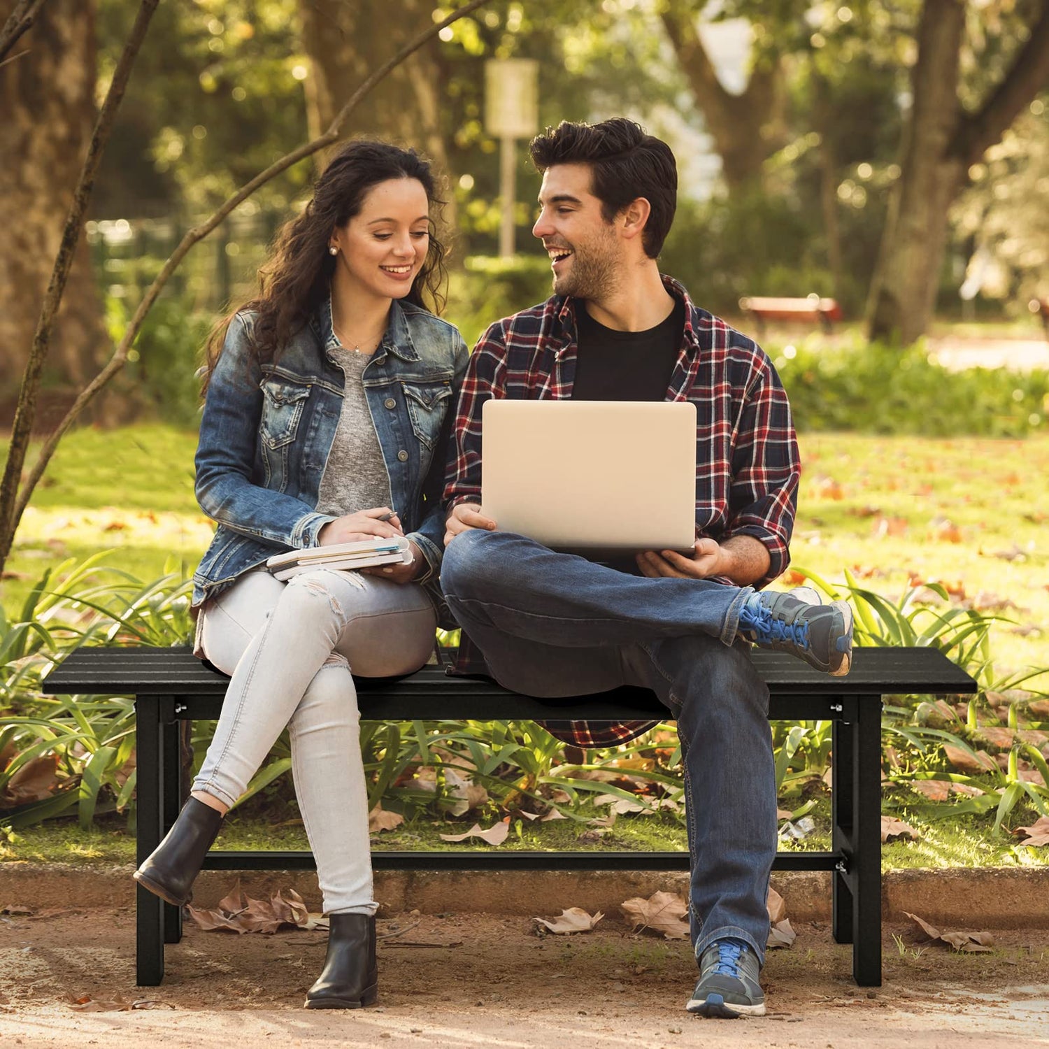 • High-quality Metal & HDPE Material: Crafted from plastic coated metal, which is characterized by its water resistant and weather-resistant, this frame of this bench is guaranteed to have a long service life. In addition, the bench seat made of eco-friendly and anti-fading HDPE and is suitable for outdoor use.