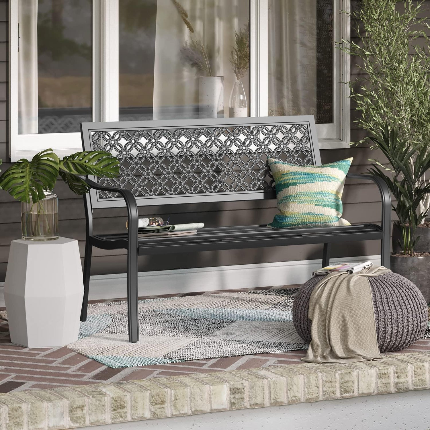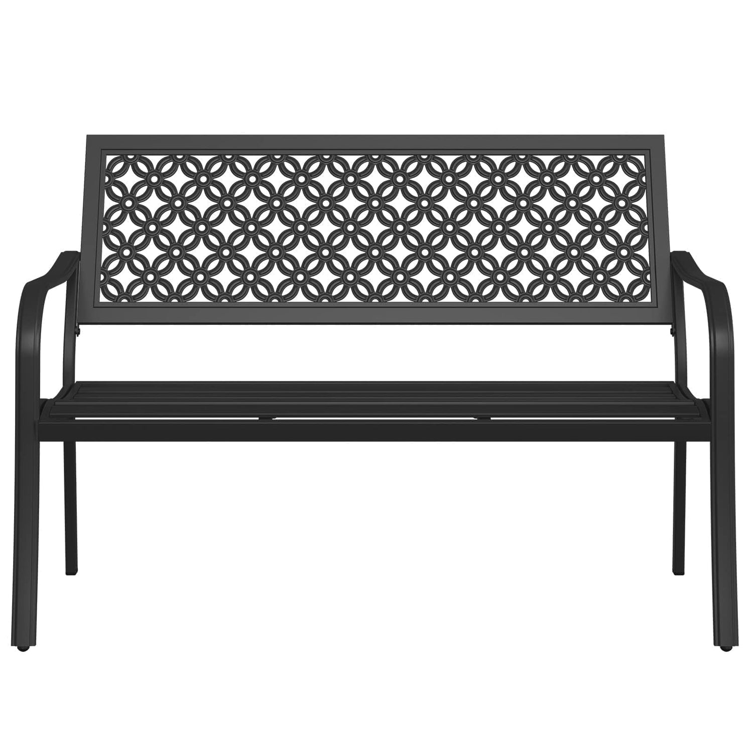 Grand patio 50" Outdoor Bench, Garden Benches with Anti-Rust Metal Powder Coated Frame, Patio Bench for Front Porch Park Outside Furniture Decor, Black