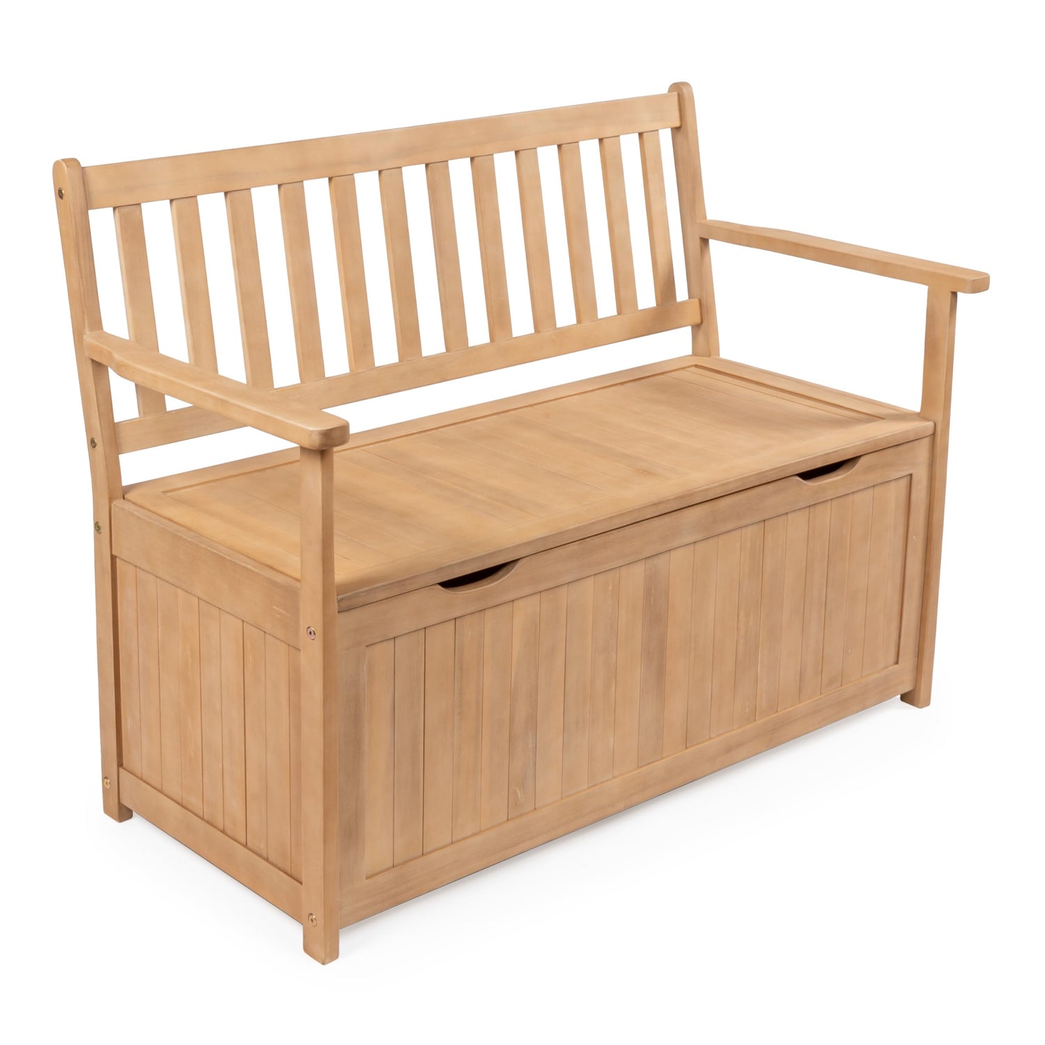 Details: Our classic storage bench adds traditional farmhouse charm to your entry, porch, or family room. Made from natural acacia wood, it's the perfect place to store shoes, toys, or even outdoor pillows. Easy-to-lift lid has a soft-close mechanism to keep it from slamming shut.
