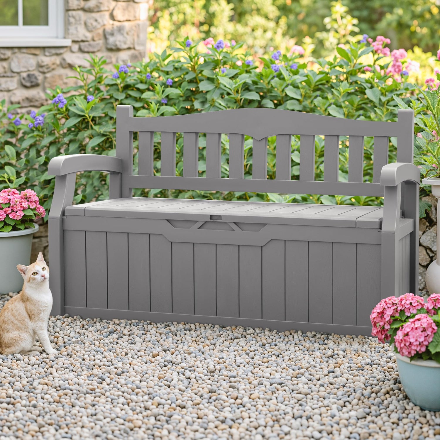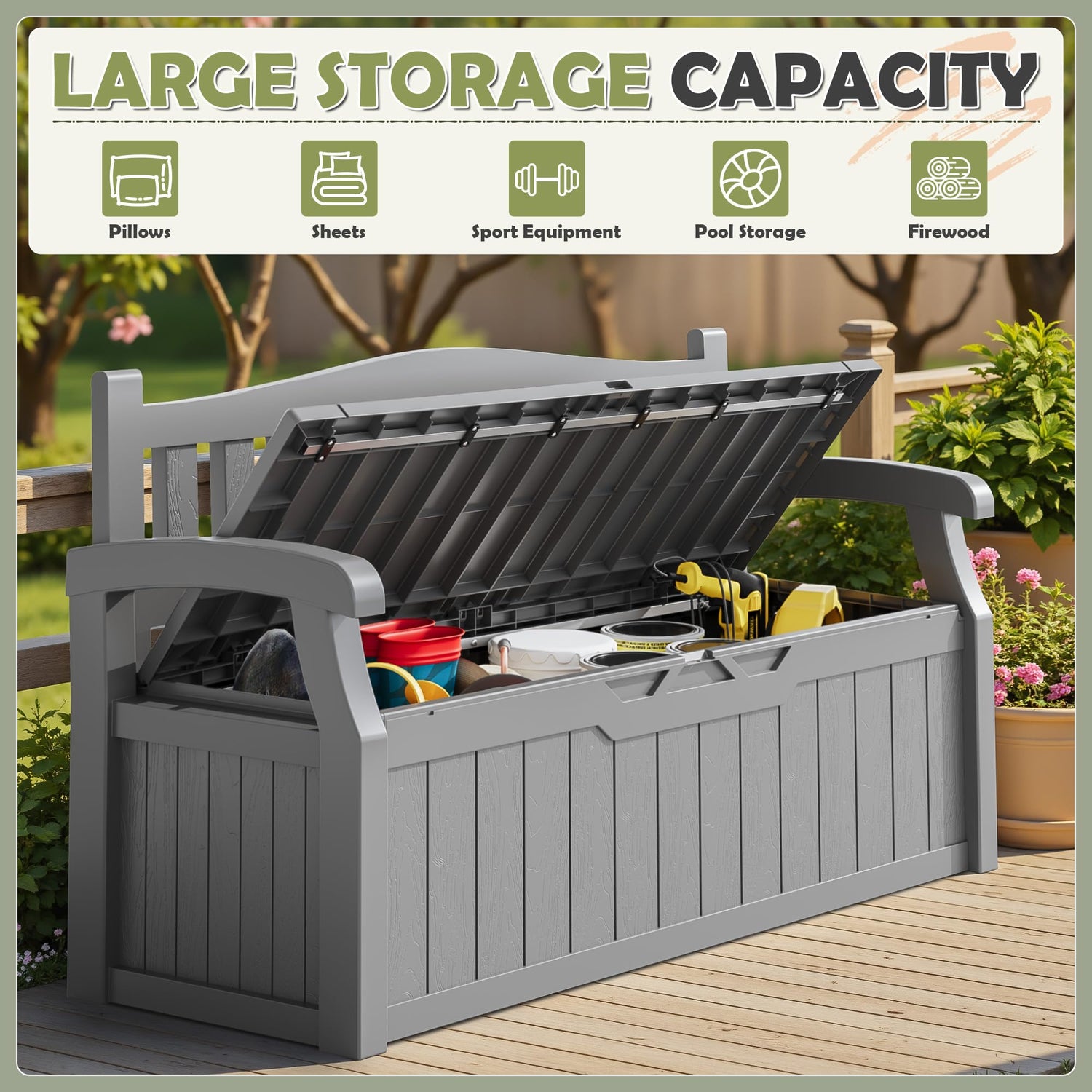 Homall 75 Gallon Outdoor Storage Benches Lockable Deck Box with Waterproof and UV Resistant, Waterproof Storage Box for Patio Furniture, Tools, Cushions (Grey)