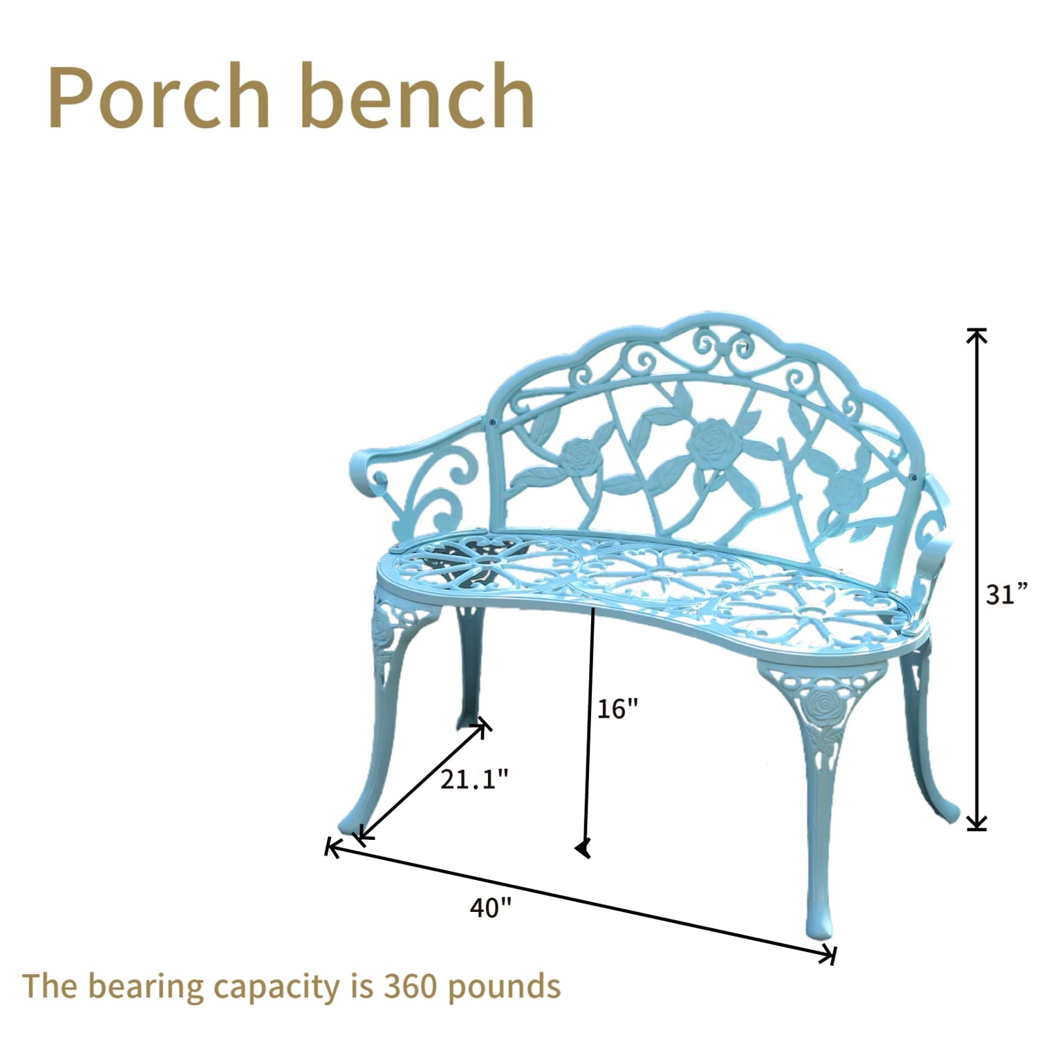 KAILI Garden Bench, Metal Aluminum Rose, Suitable for Garden Porch Park Front Porch Balcony Outdoor (Light Blue)
