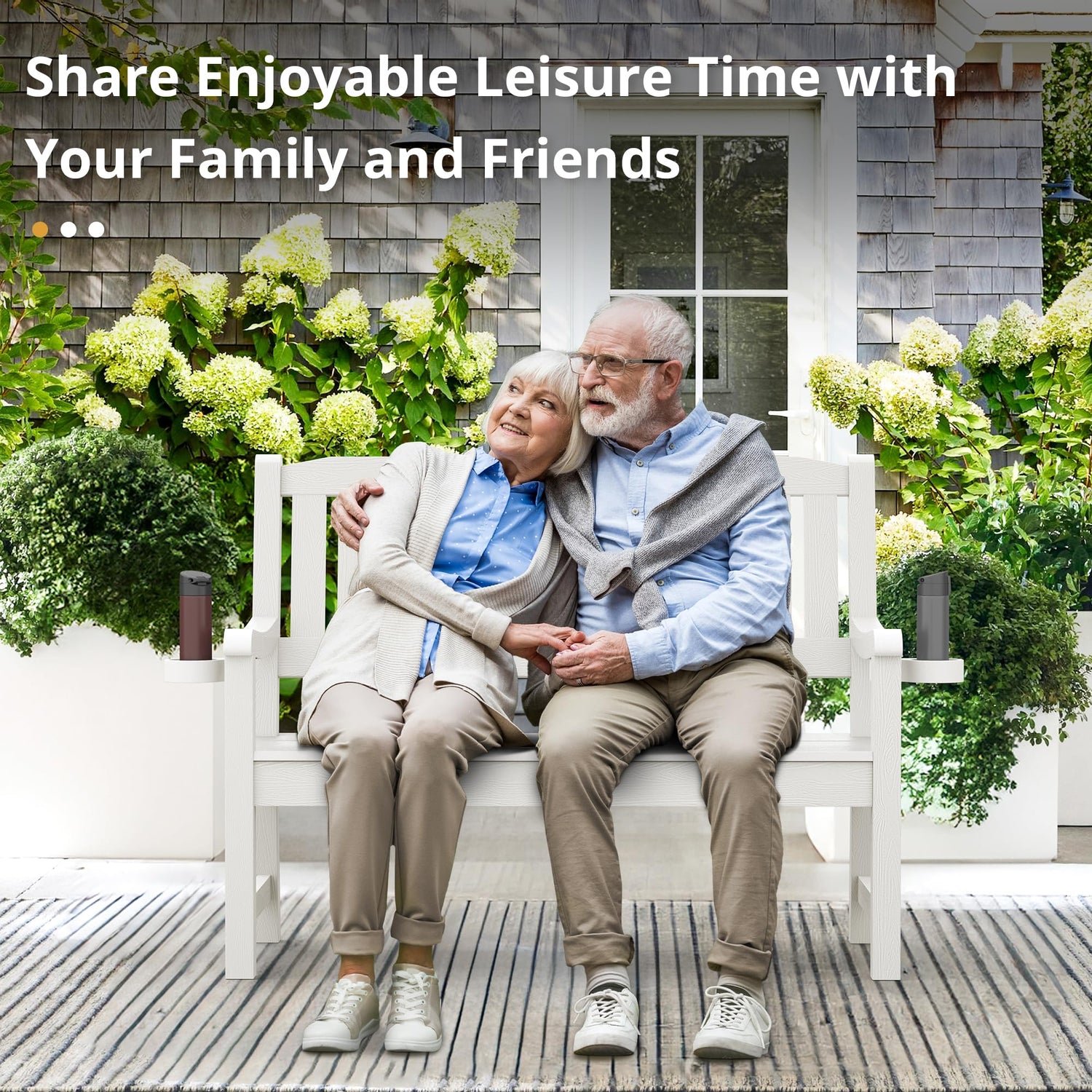- Multiple Scenes: The outdoor bench with rich colors and strong texture blends seamlessly with any setting; Great for garden, porch, balcony, and courtyard, it includes two cupholders and offers comfort for rest and socializing, combining form and function