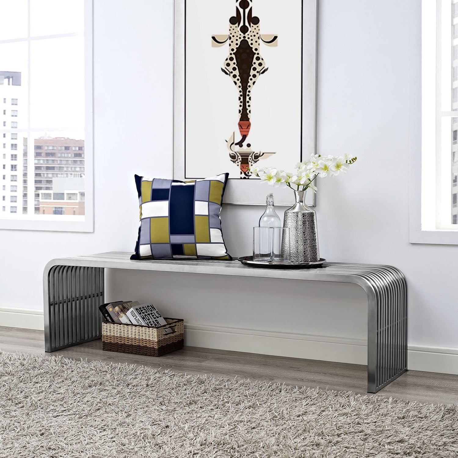 - LASTING CONSTRUCTION - Durable tubes of stainless steel form the frame of this modern bench. With sturdy support beams and seamless design, Pipe is both a dynamic seat and decorative accent
