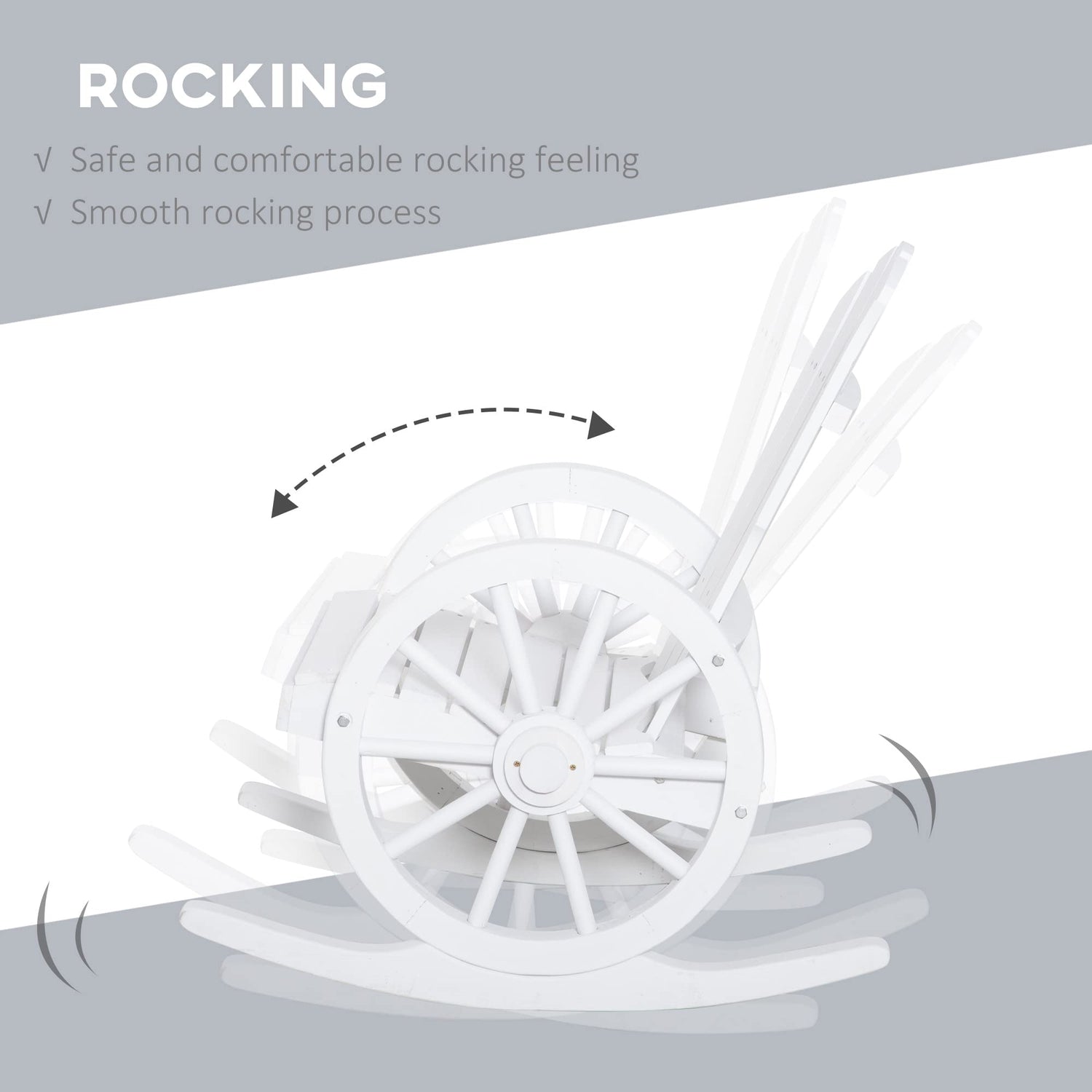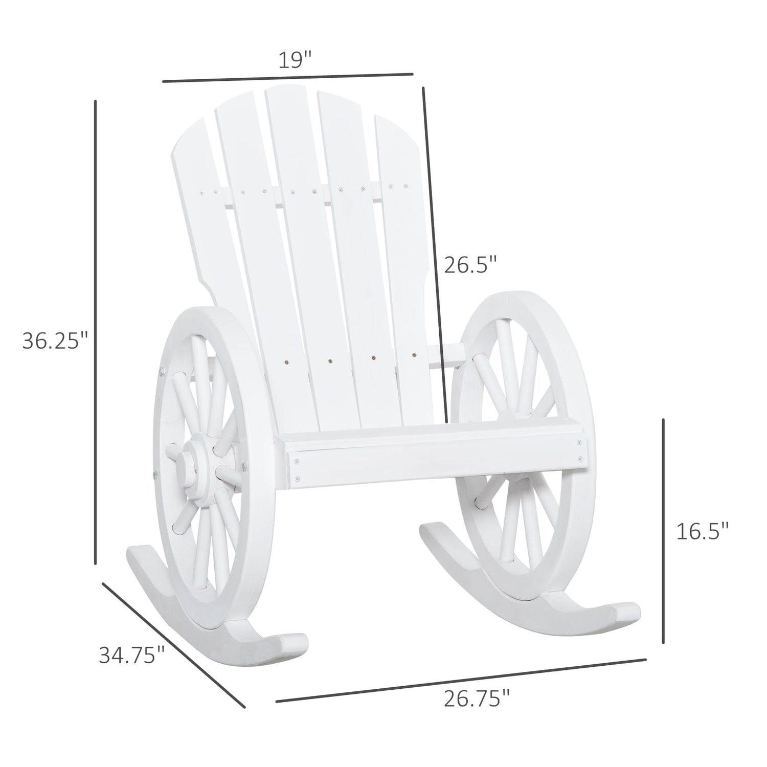 Outsunny White Adirondack Rocking Chair with Wagon Wheel Armrests – Outdoor Comfort for Porch, Garden, and Poolside