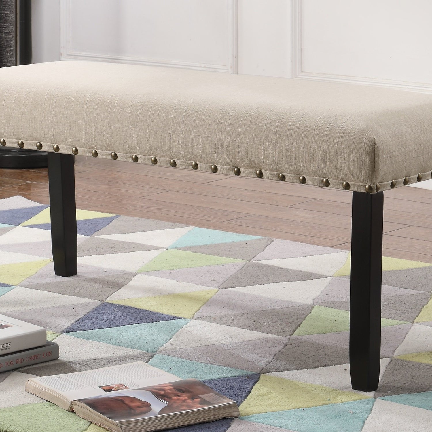 Roundhill Furniture Biony Fabric Dining Bench with Nailhead Trim, Tan