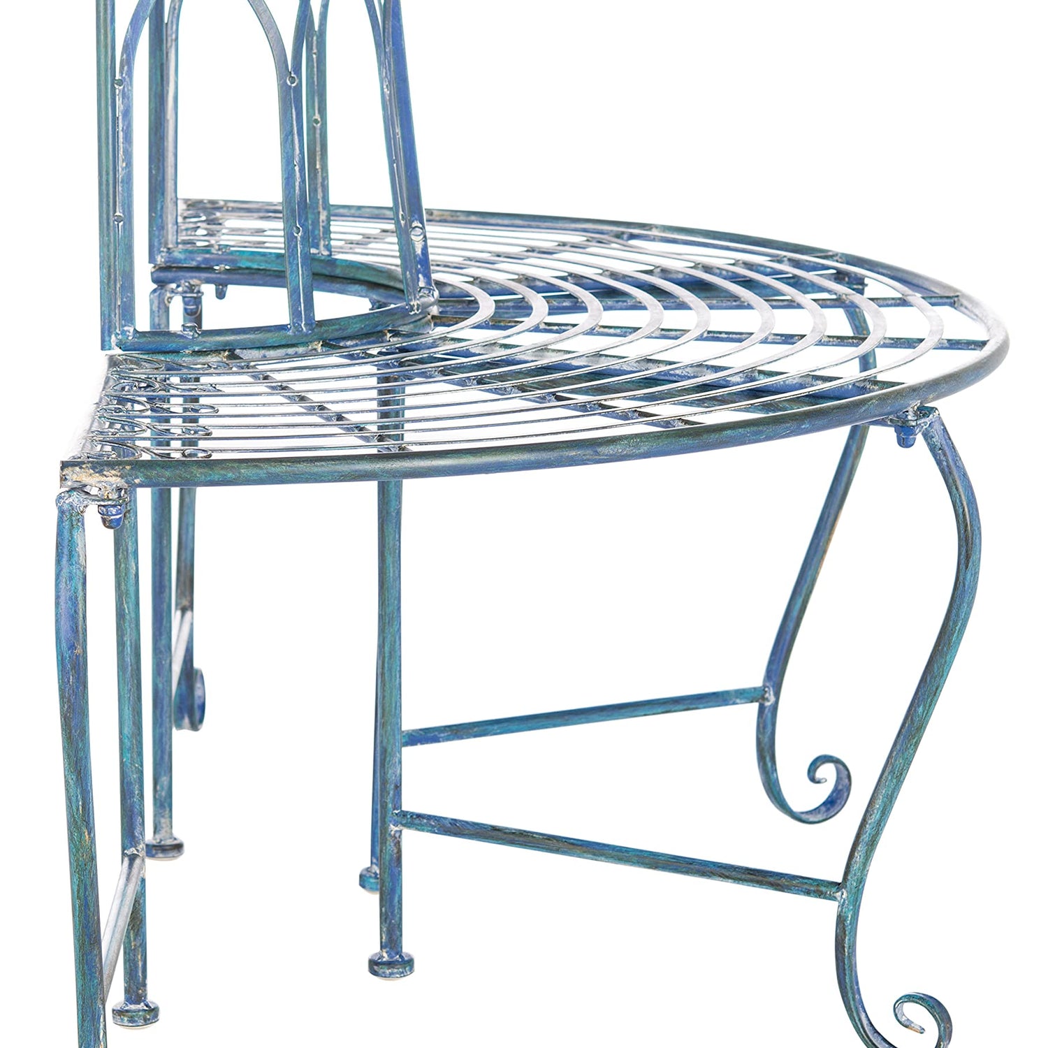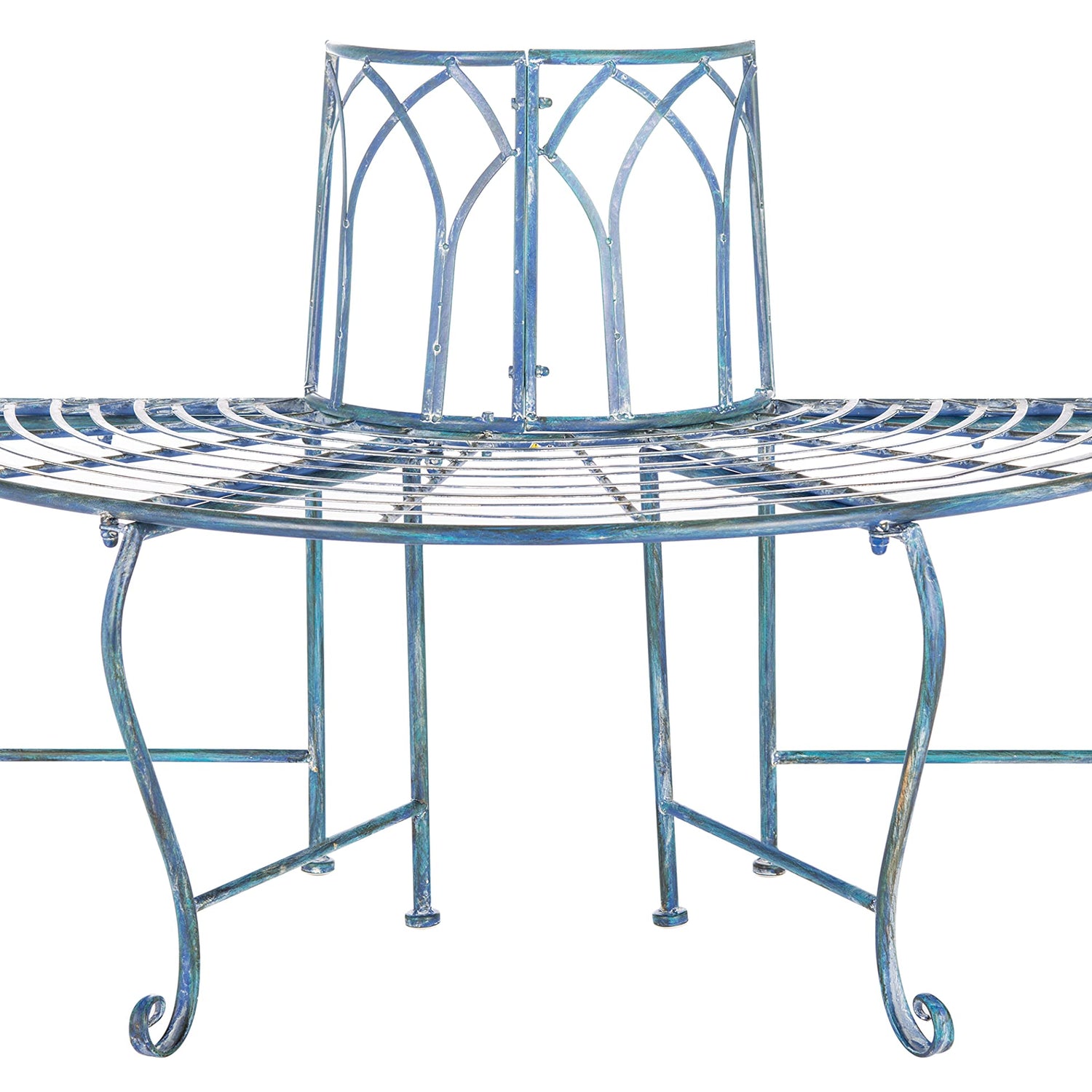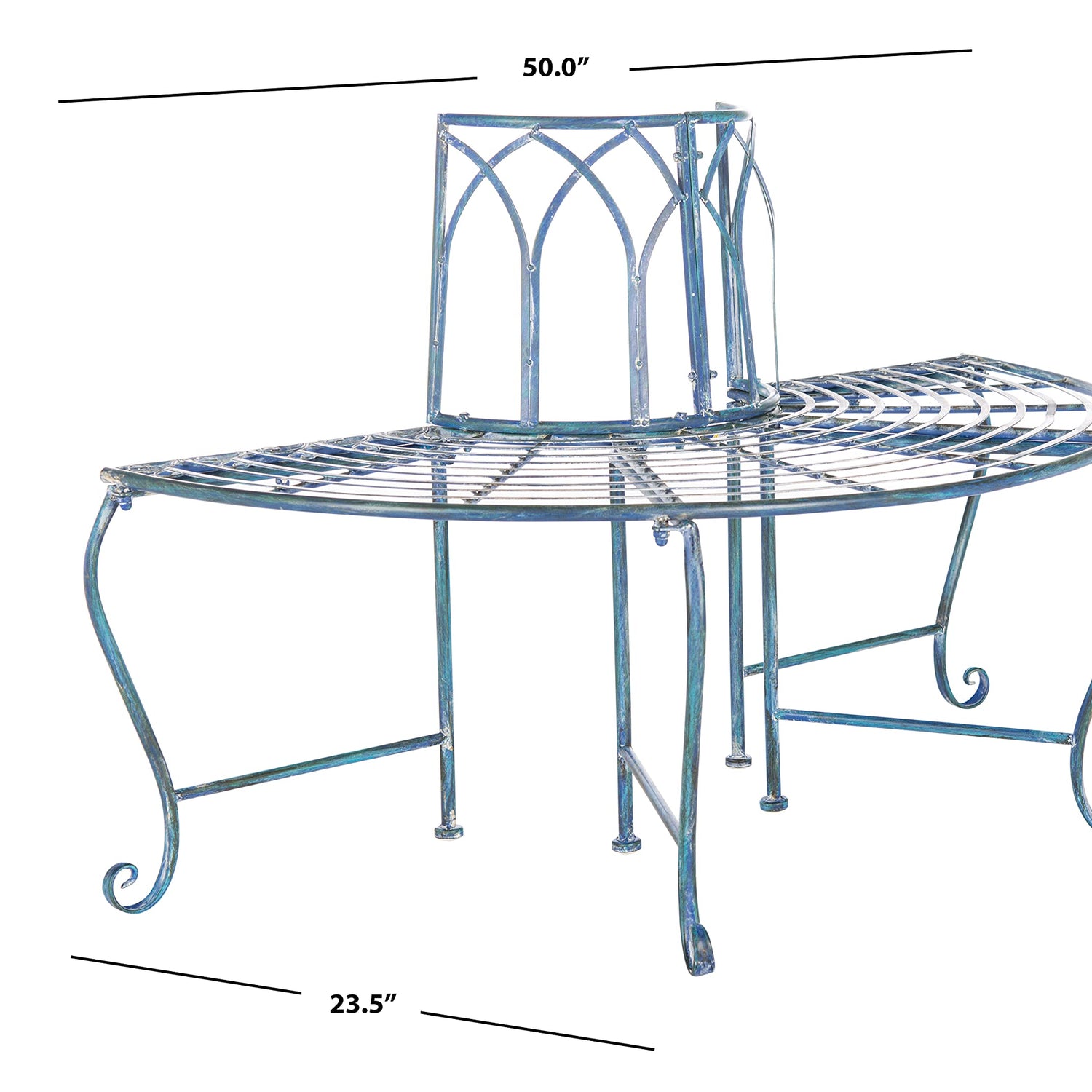 SAFAVIEH PAT5018C Outdoor Collection Abia Antique Blue Wrought Iron 50-inch Tree Bench