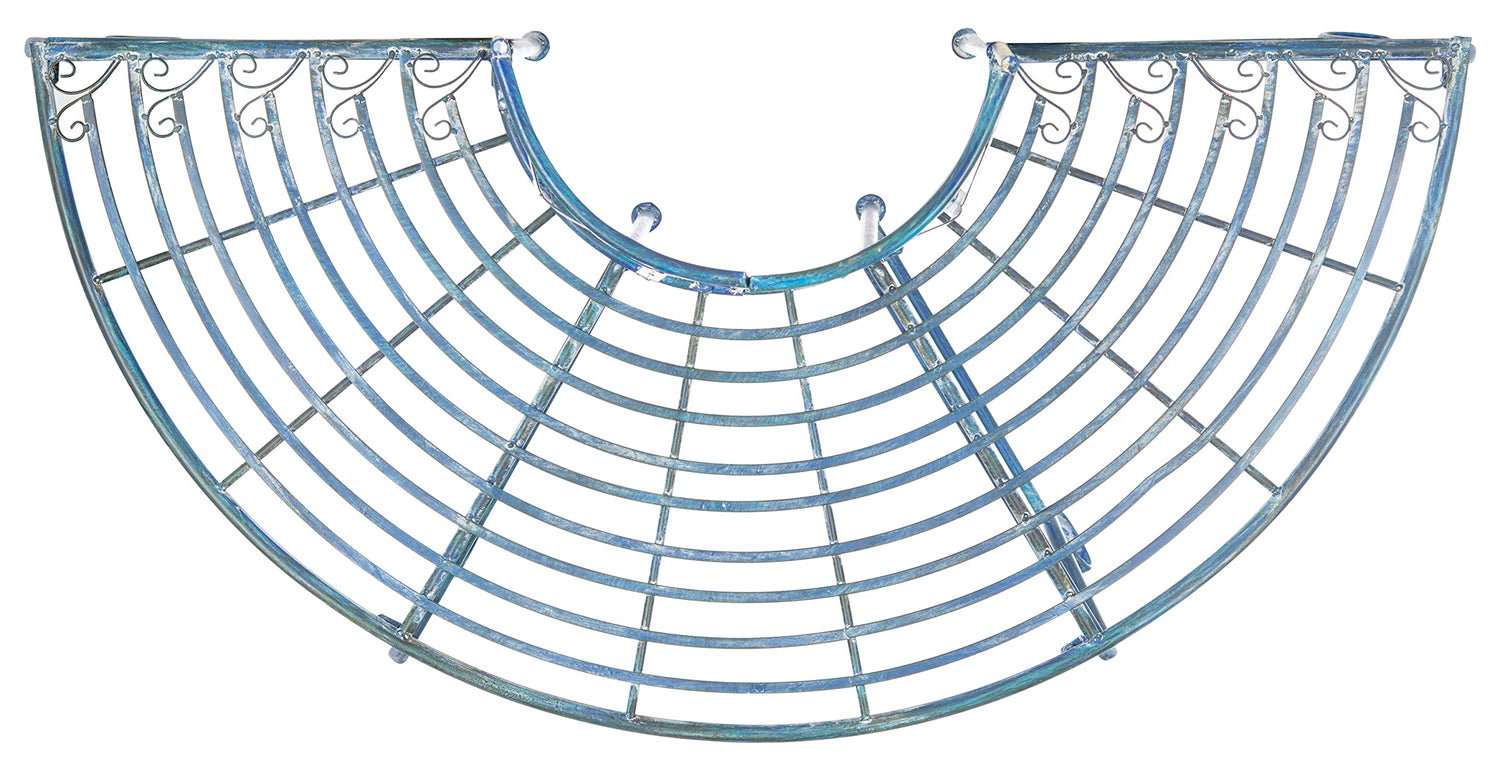 - Made of sturdy iron with Victorian scroll details and an antique blue finish