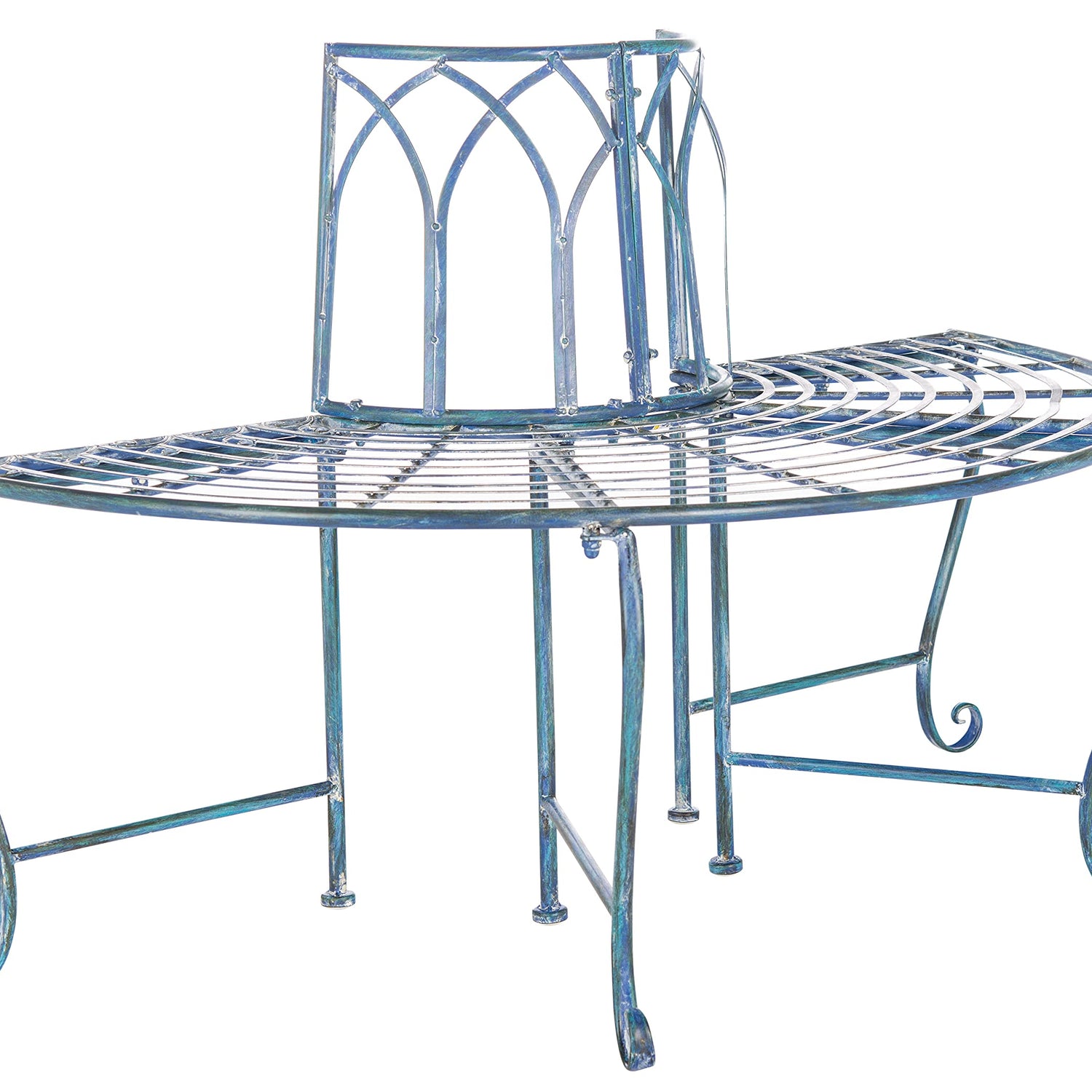 Details: This romantic Abia Tree Bench adds a whimsical touch to any estate. Designed with an antique blue finish on its wrought iron scrollwork, Abia creates an instant shaded oasis by any greenery. Ideal for adding extra seating in the garden and timeless charm to any outdoor living area.