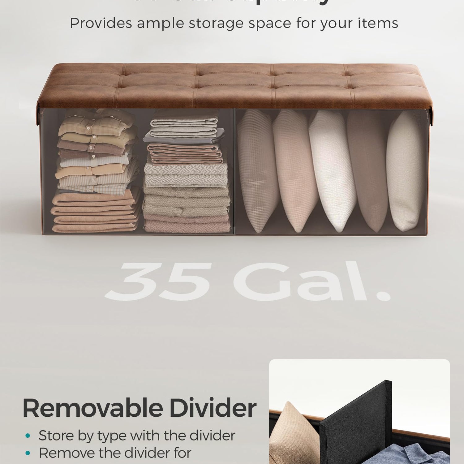 - 【OODLES OF STORAGE】Unfold this storage box, insert the sturdy base plate, and you have 35 gal. (131 L) space for storing bed linen, books, or clothing