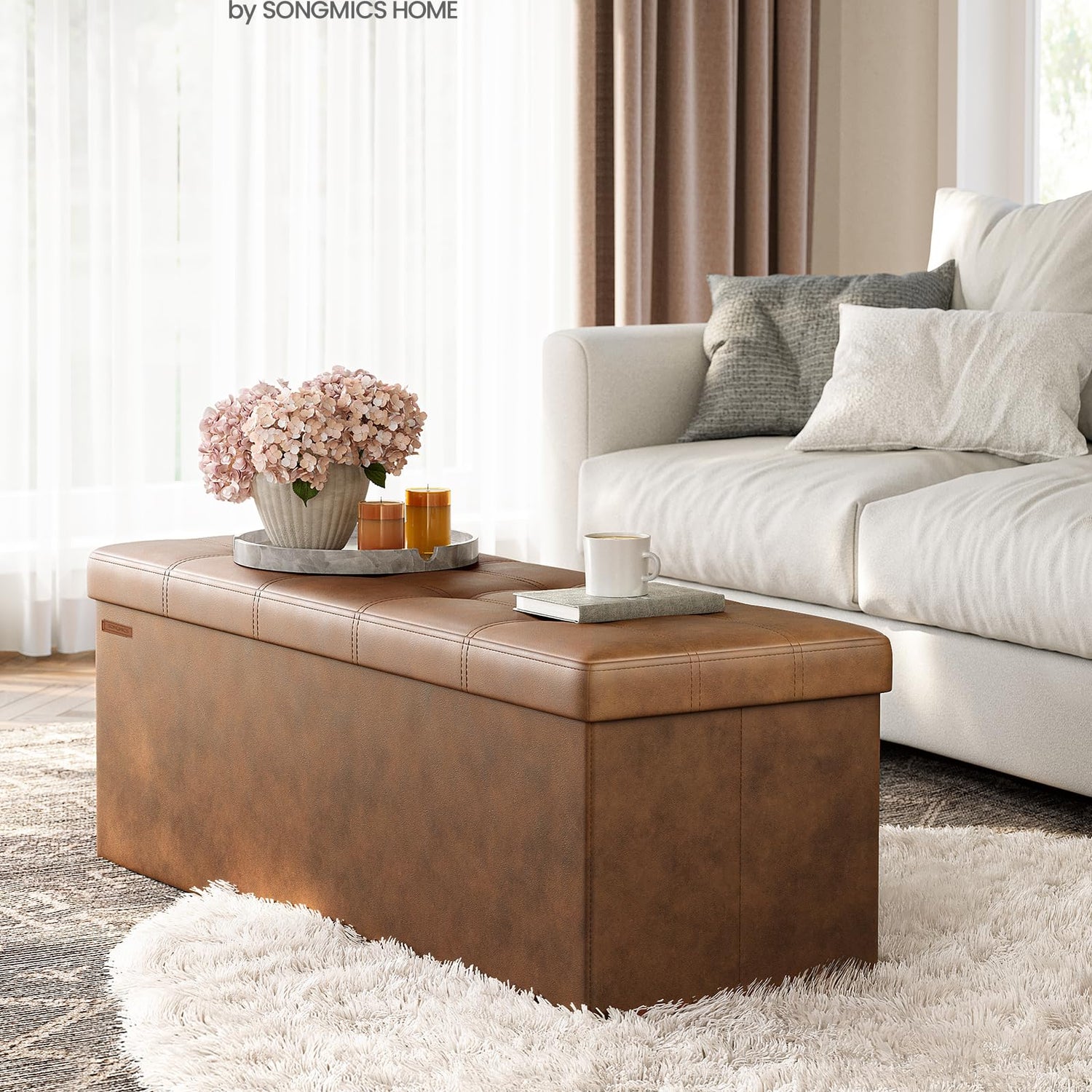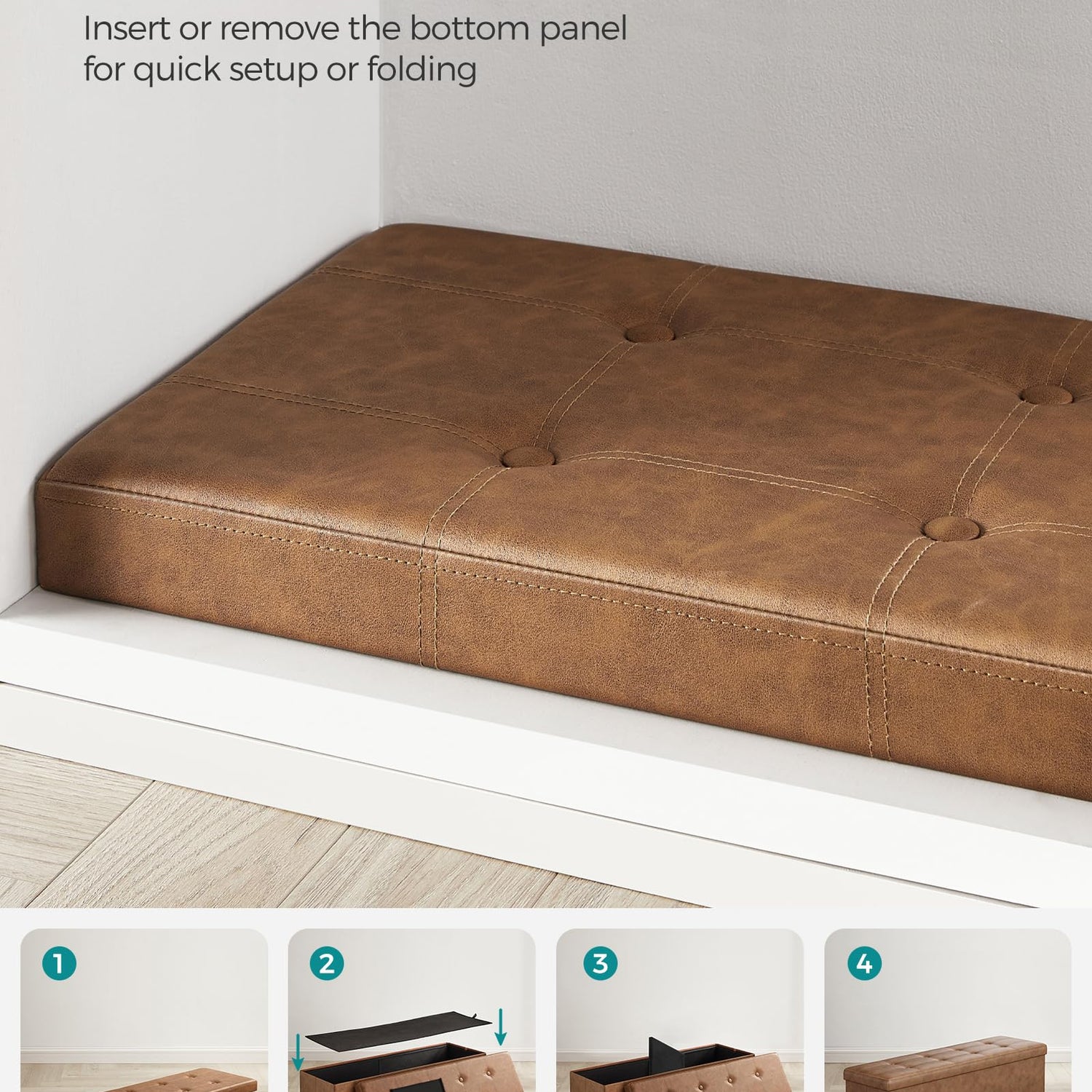 - 【QUICK ASSEMBLY, EASY FOLDAWAY】This storage ottoman from the SONGMICS MAZIE Collection has a foldable design that allows quick setup in seconds by simply inserting the bottom panel. Easily fold and store it under the bed or in a closet when not in use
