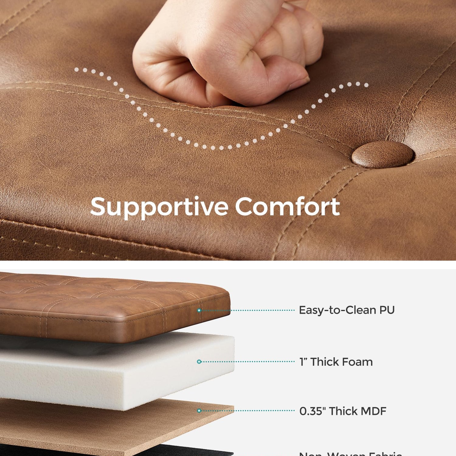 - 【COMFORTABLE SEATS】Padded with 1" (2.5 cm) thick, high-resilient, high-density foam, this storage bench is resistant to deformation, so you can sit on it comfortably