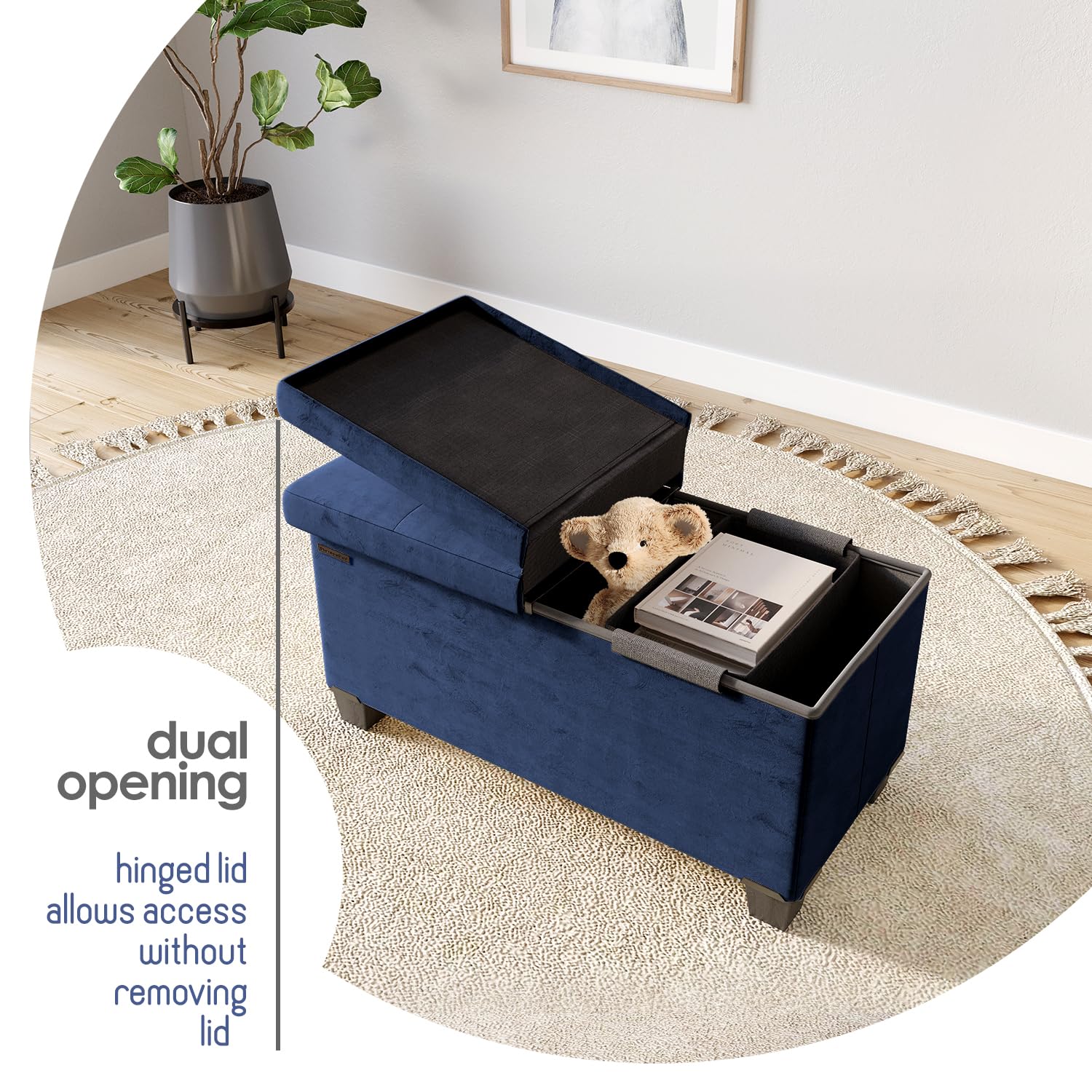 - Durable Velvet Ottoman: Organize essentials and accessories with this multipurpose storage ottoman bench that provides you with a comfortable seat for putting on socks and shoes, while making a statement as an end of bed storage bench or entry bench with storage.