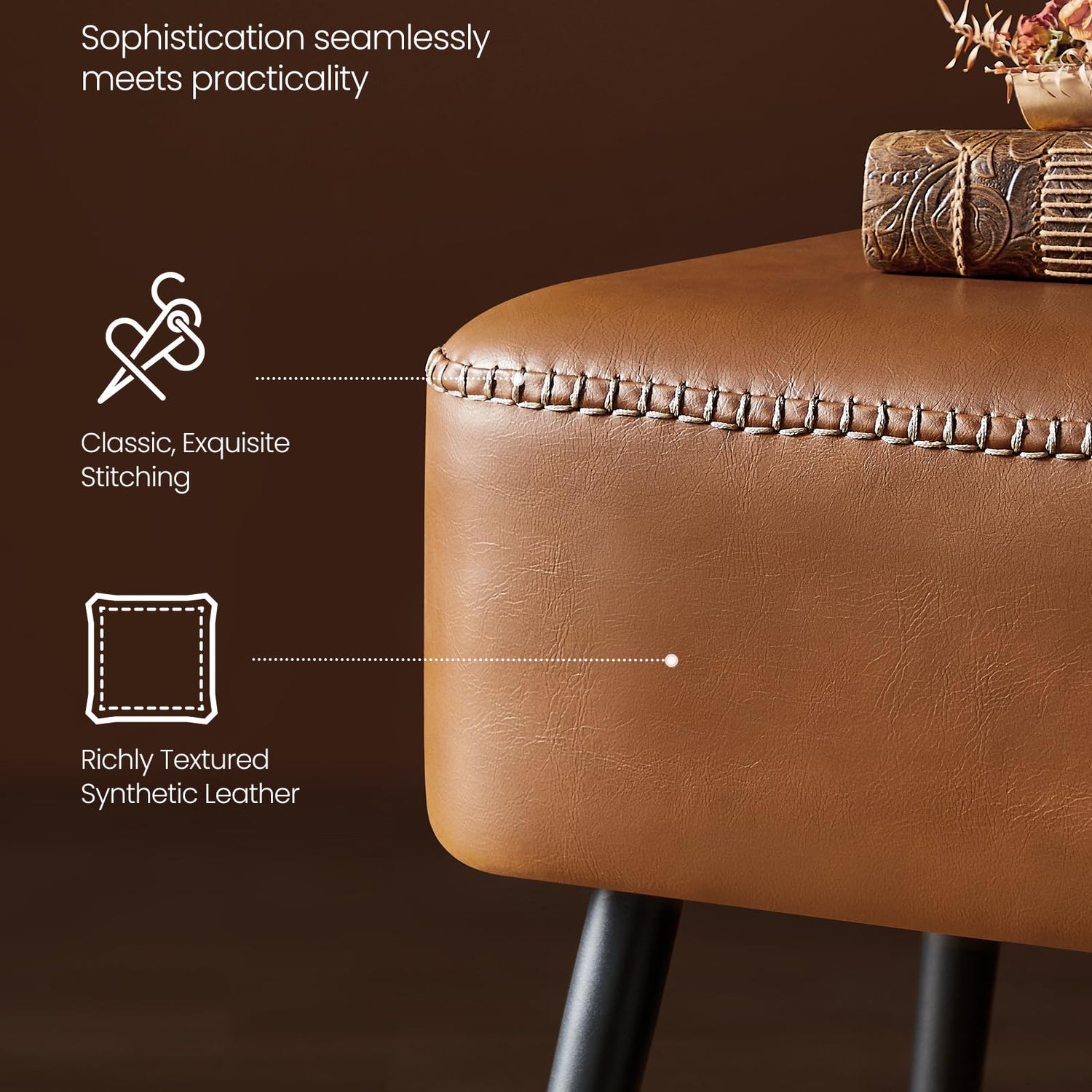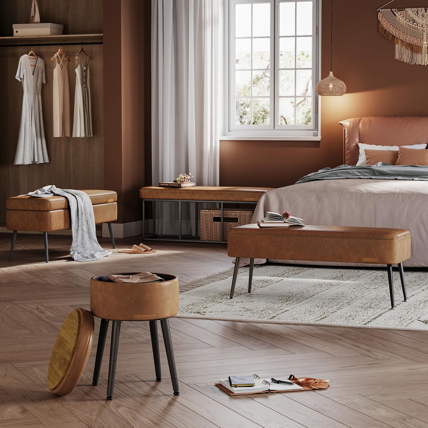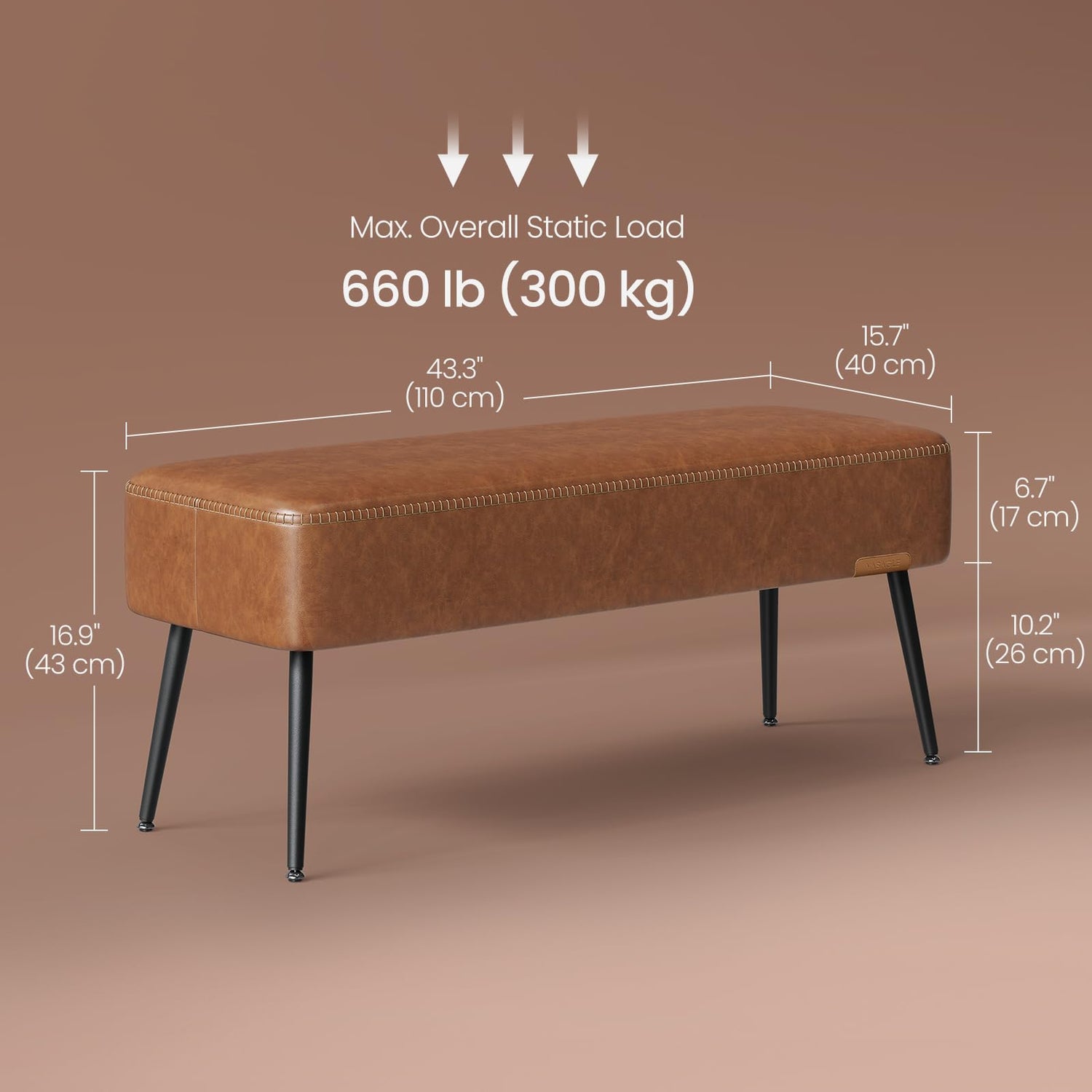 VASAGLE EKHO Collection - Bench for Entryway Bedroom, Synthetic Leather with Stitching, Ottoman Bench with Steel Legs, Living Dining Room, Mid-Century Modern, Loads 660 lb, Caramel Brown ULOM076K01