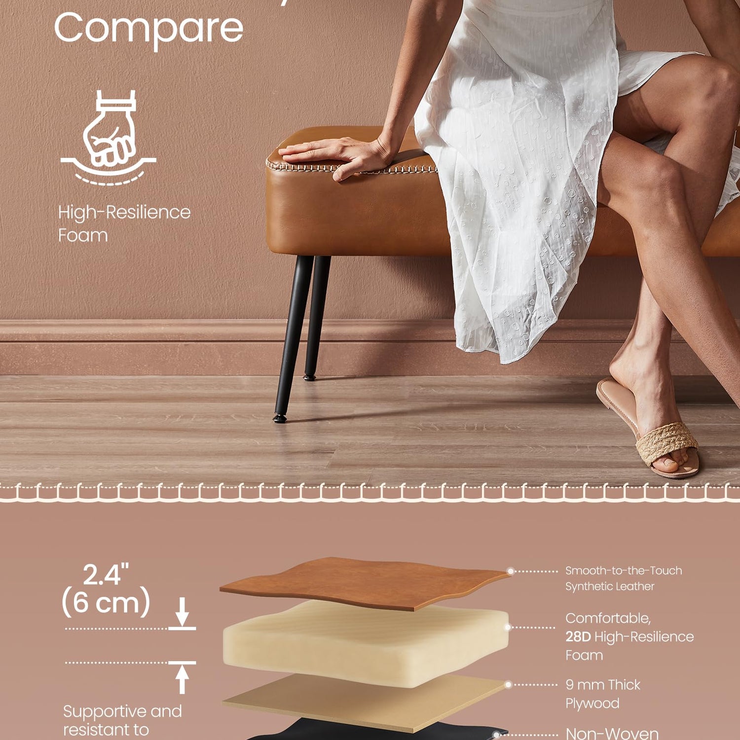 - [Comfort at Every Sit] Glide your hand over the smooth cover, then sink into the supportive 2.4" (6 cm) thick, 28D high-resilience foam. This padded bench provides a comfortable seat that endures, standing the test of time without deformation