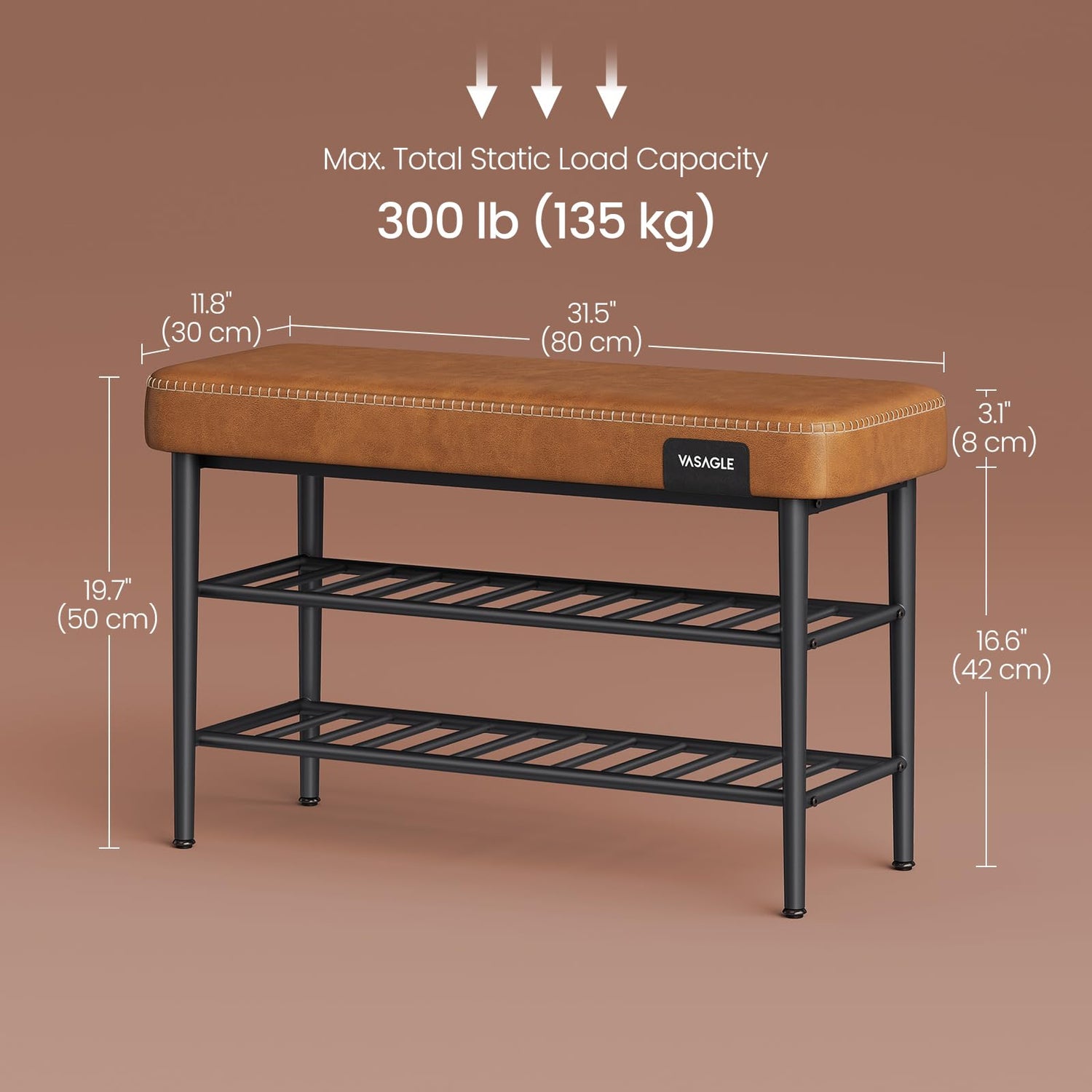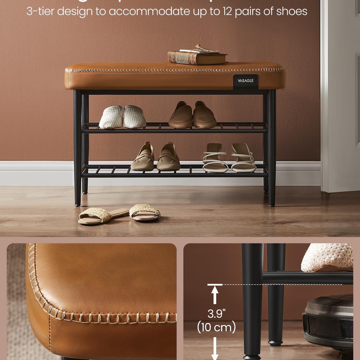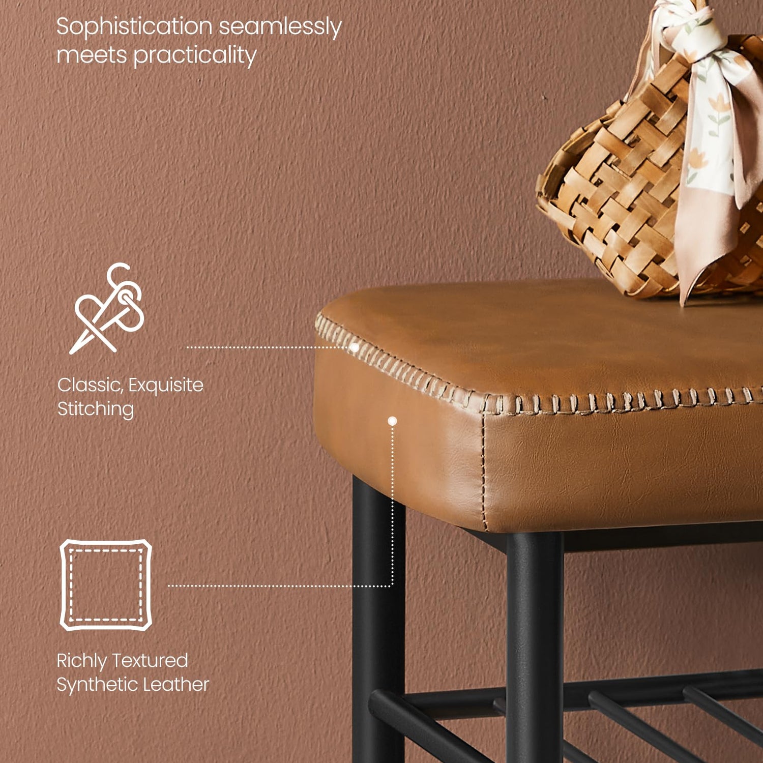 VASAGLE EKHO Collection - Shoe Rack Bench, Storage Bench for Entryway, Synthetic Leather with Stitching, Mid-Century Modern, Loads 300 lb, 11.8 x 31.5 x 19.7 Inches, Caramel Brown ULSB054K01