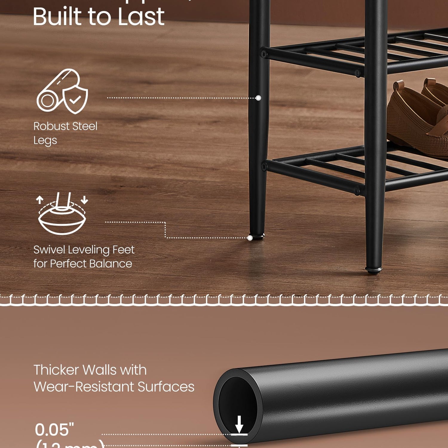 - [Sturdy and Stable] This entryway bench, built with a robust steel frame and swivel leveling feet, effortlessly supports up to 300 lb. It offers a sturdy, wobble-free seat for you to comfortably prepare for the day or unwind after a long one
