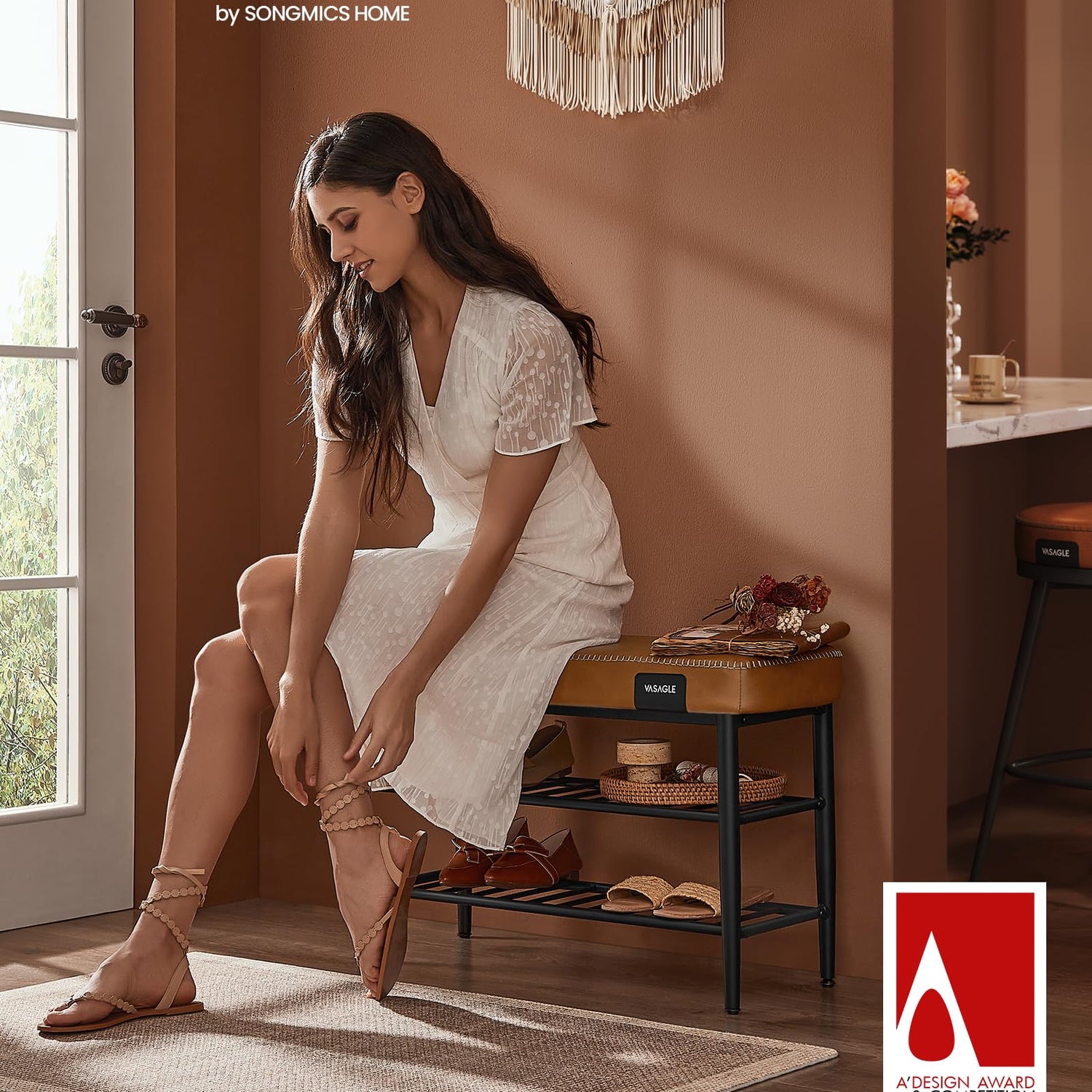 - [Style That Speaks] Recognized the Bronze A’ Design Award 2024, this shoe bench from our VASAGLE EKHO Collection blends synthetic leather with refined stitching. A tangible homage to craftsmanship, it helps craft a home that speaks volumes about style