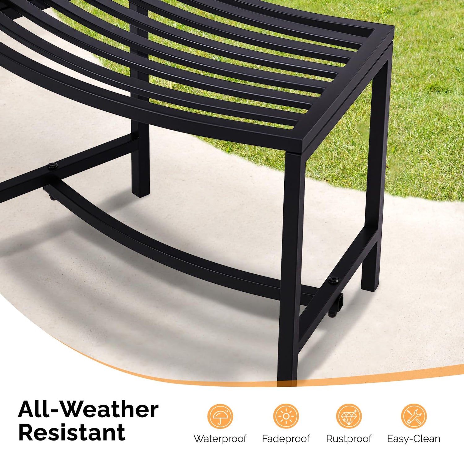 VINGLI Outdoor Metal Curved Bench, Weatherproof Fire Pit Bench Set of 4, Heavy Duty Steel Backless Benches, Metal Outside Seating for for Garden, Patio, Plant Stand and Holder