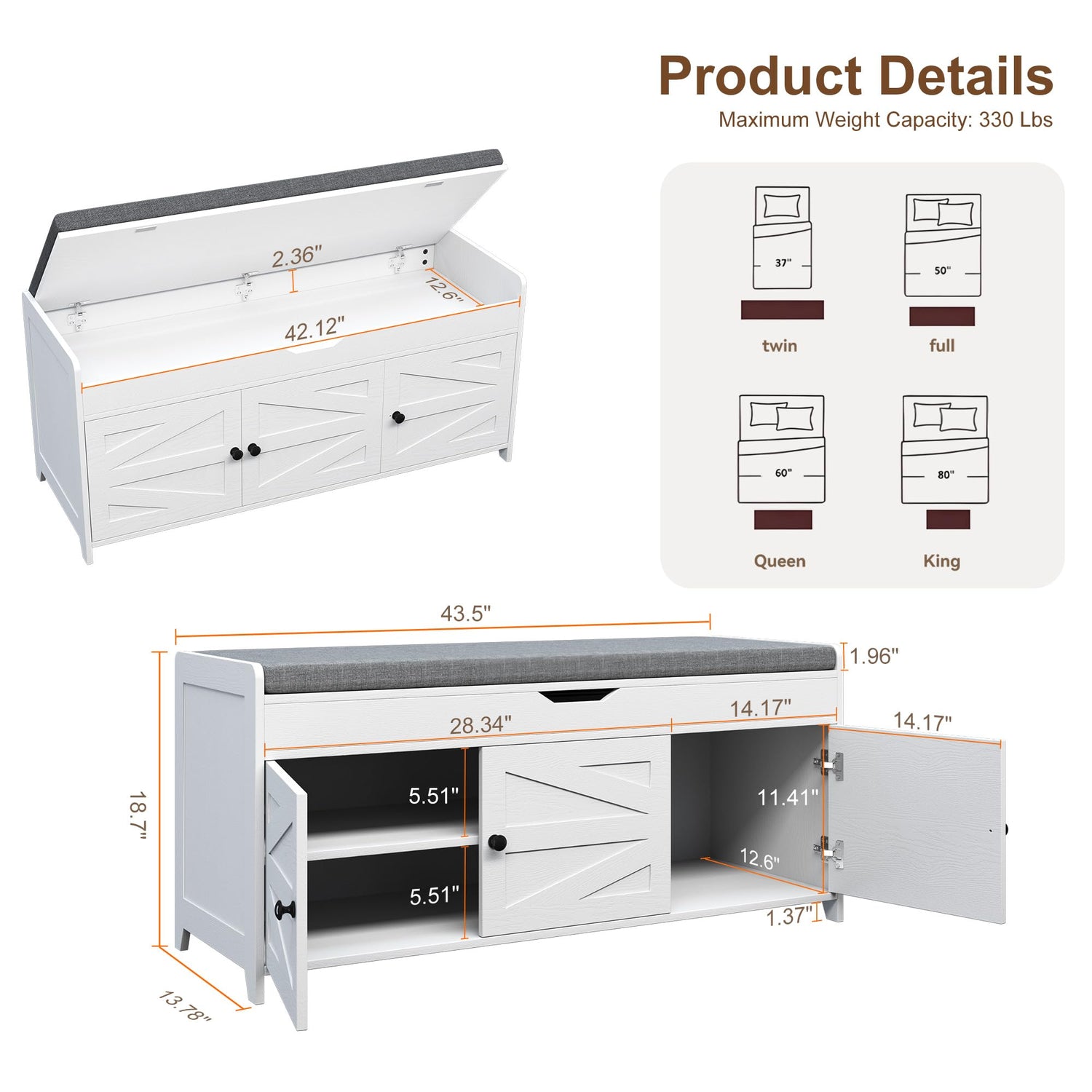 Xdwwhome Shoes Bench with Cushion, Storage Bench, Entryway Bench with Lift Top Storage, 43.3" Wooden End of Bed Bench, Shoe Bench Cabinet for Living Room Bedroom Hallway Garden, 330 lbs, White