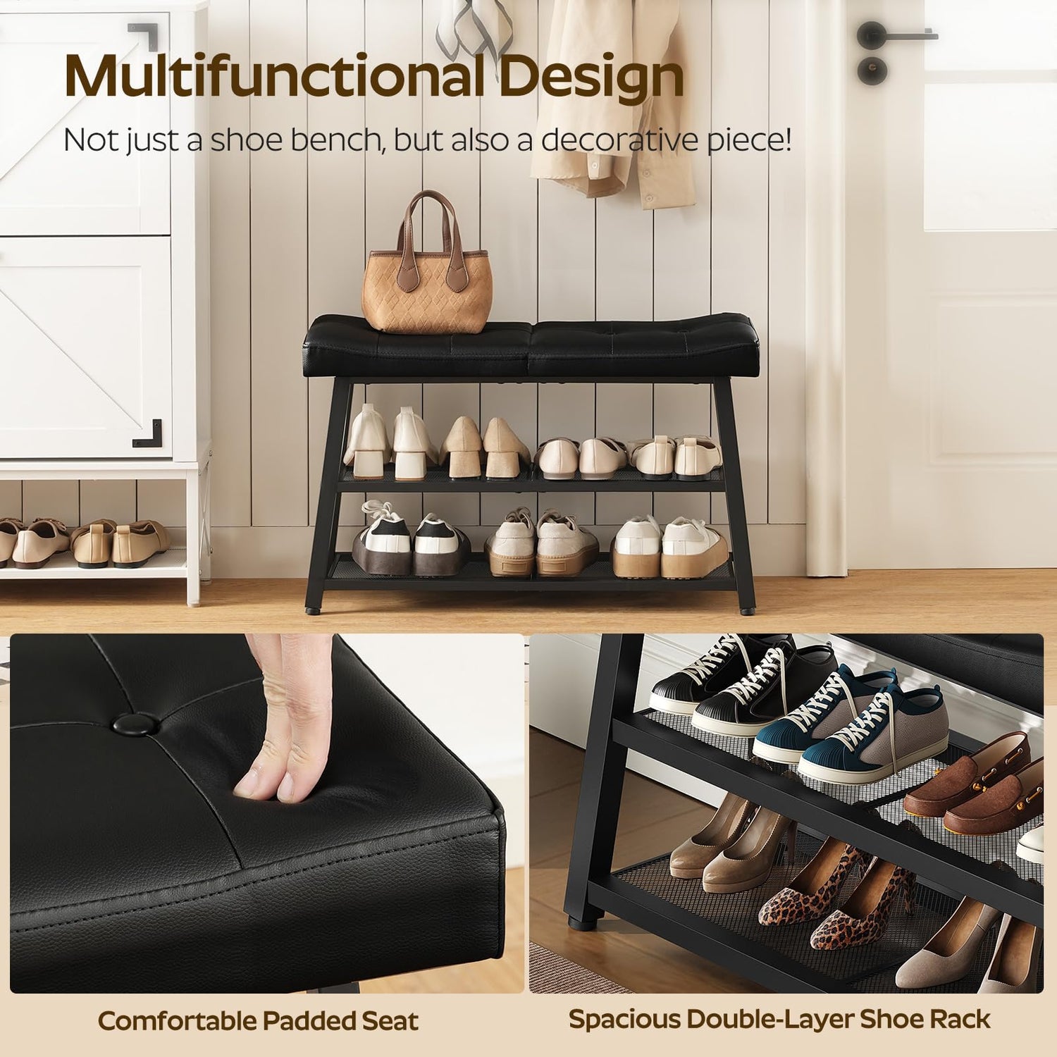 YATINEY Shoe Bench, 3-Tier Shoe Rack, Entryway Bench with Storage and Cushion, for Hallway, Foyer, Bedroom, Black HX02BB