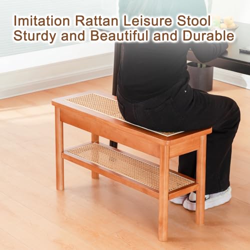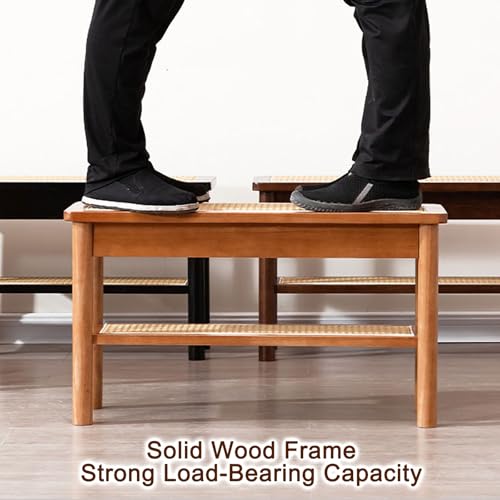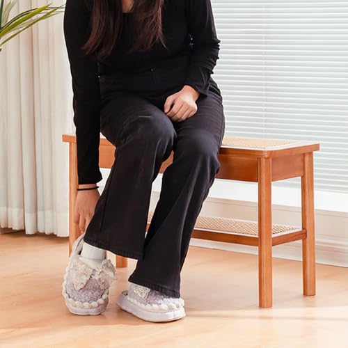 YLLSMGS Porch Bench Entryway Bench Wooden with Woven Rattan and Storage Shoe Rack for Living Room Hallway Entry Way Front Door(Yellow,80 * 44 * 28cm/31 * 17 * 11in)