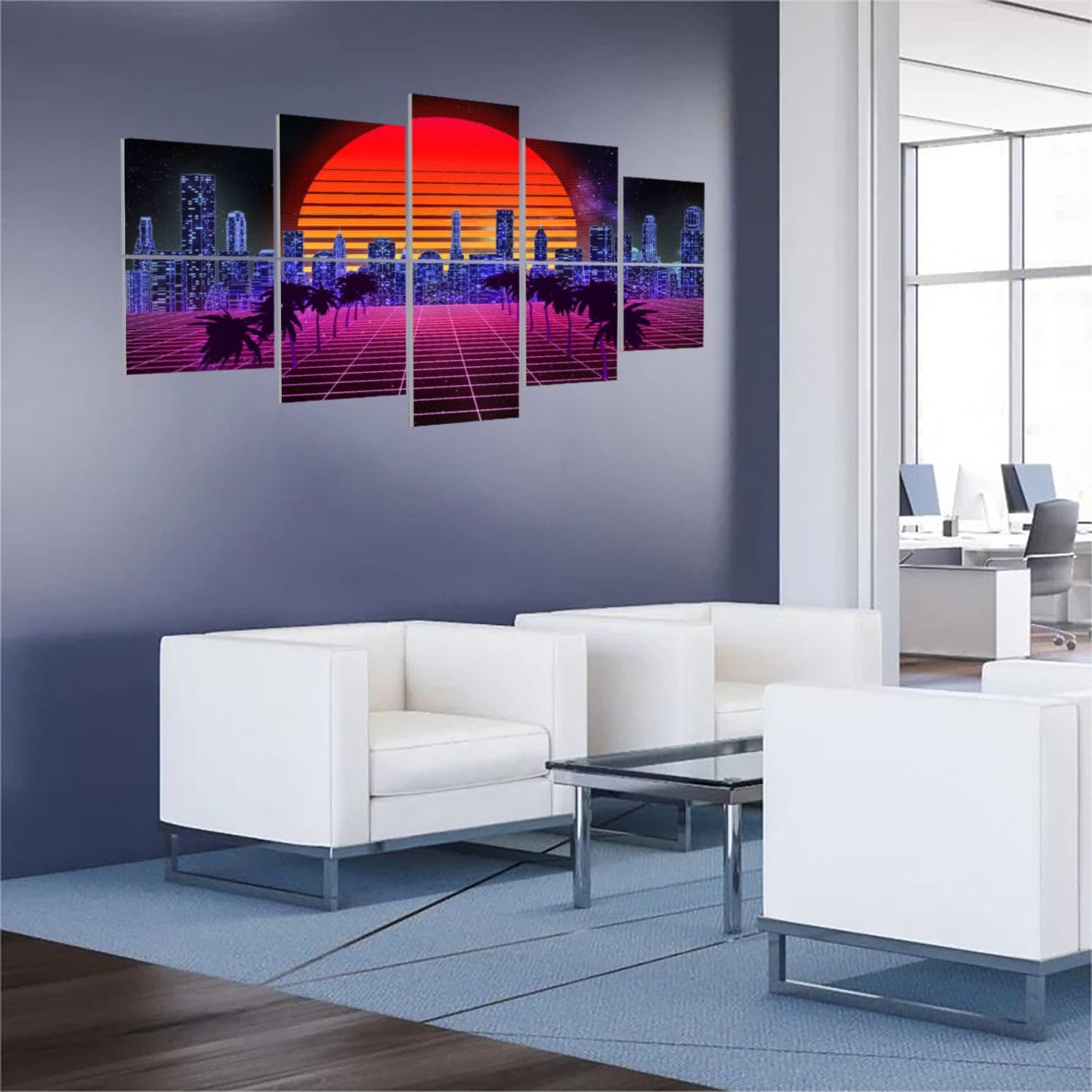 10 Pack Art Acoustic Panels Retro synthwave vaporwave skyline landscape at night sun Decorative Sound Absorbing Wall Panel Self-Adhesive Noise Canceling Soundproof Padding for Home 80" x 40"
