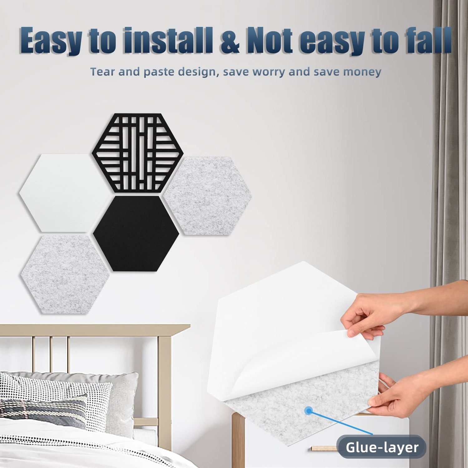 - MULTIPURPOSE ACOUSTIC PANEL: The hexagonal design, multiple DIY splicing methods, and fashionable cutout patterns can meet your dual needs for acoustic processing and wall decoration. They are suitable for bedrooms, living rooms, home theaters, home game rooms, recording rooms, vocal music rooms, offices, rehearsal rooms, and live broadcast rooms.