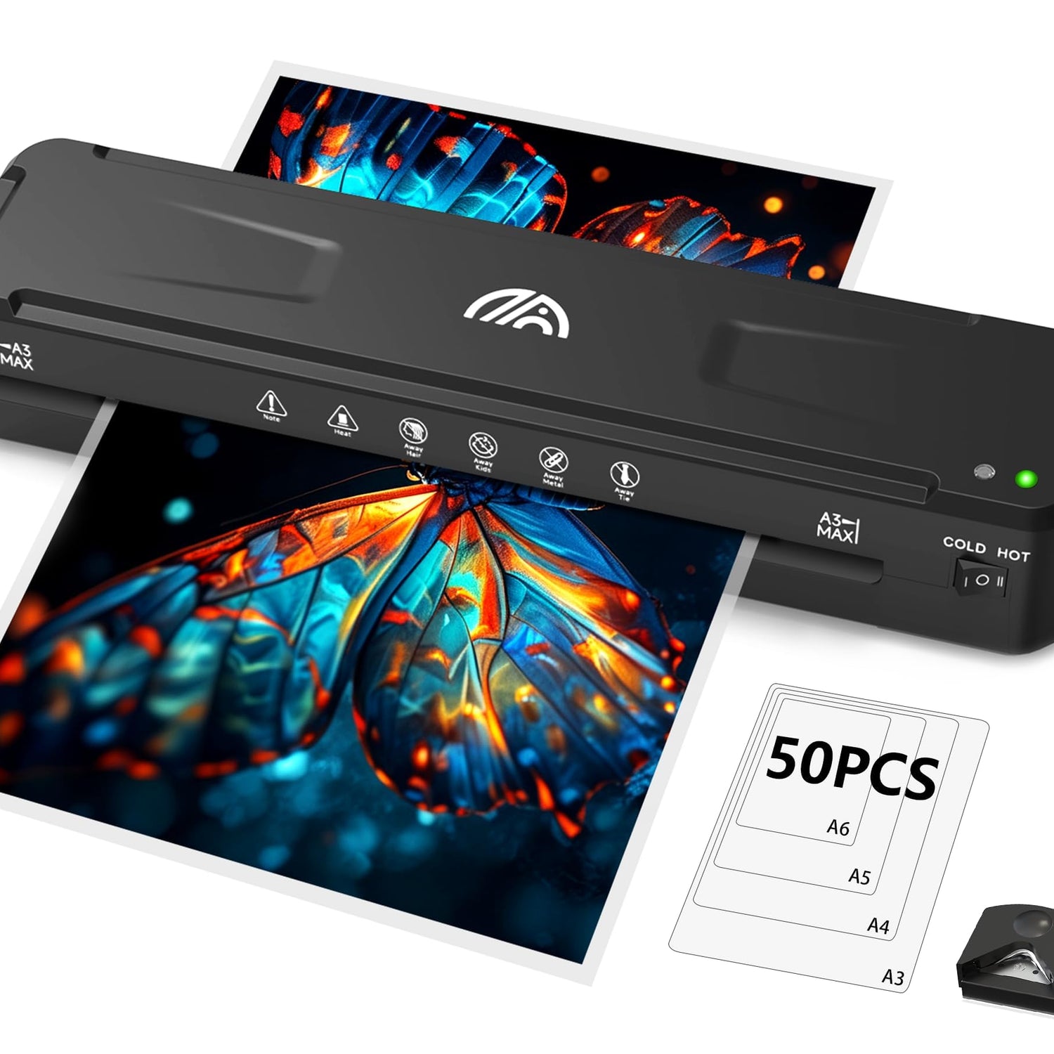 - Laminator Machine Set: 13 inch laminator*1, 50pcs thermal laminating sheets (2*A3, 3*A4, 15*A5, 30*A6), corner rounder*1, user manual*1. 50pcs laminating sheets can fulfill your laminating needs. This laminating machine is the best gift for friends or family.