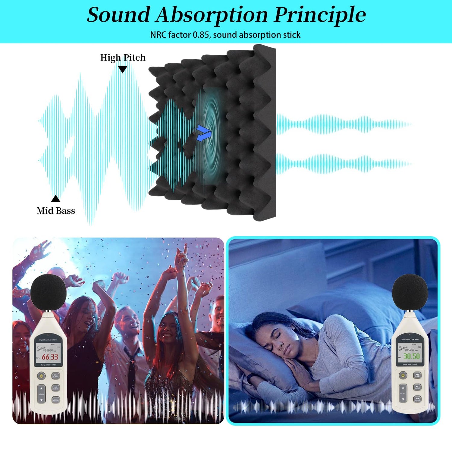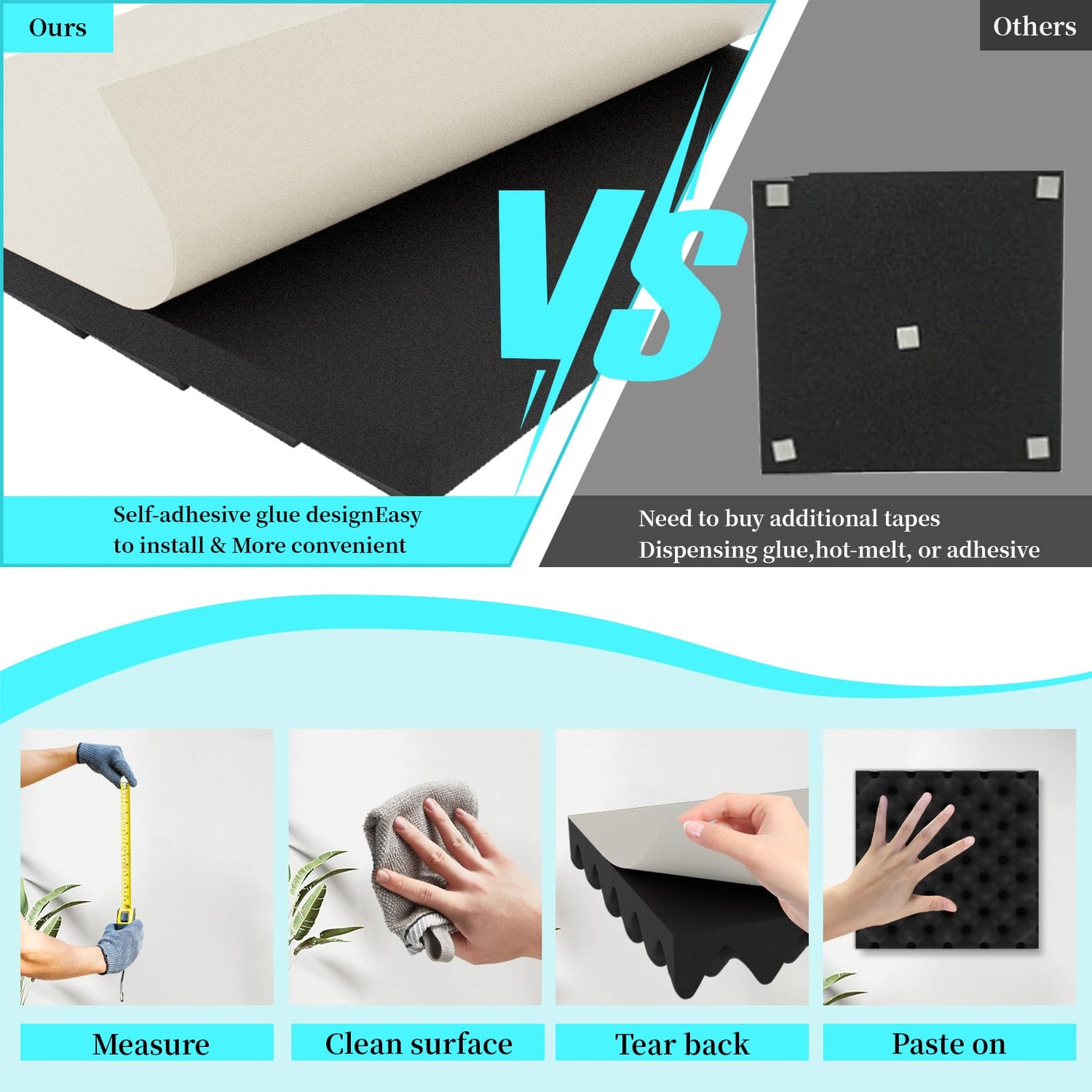 - FOUCARSI acoustic foam panels effectively reduce reverb and unwanted noise, optimizing room acoustics. Perfect for recording studios, home theaters, and gaming rooms.The design enhances the porous structure of the acoustic foam, providing a more professional-grade soundproofing effect.