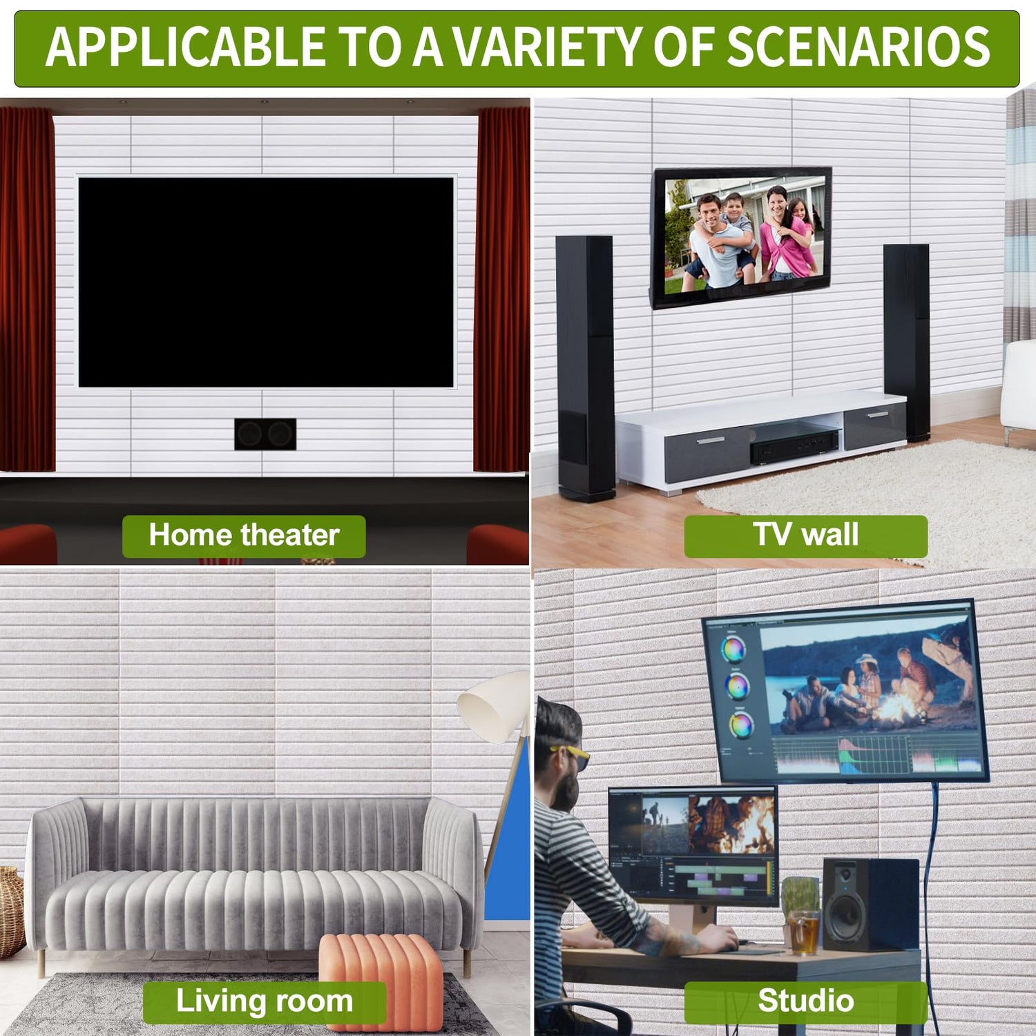 - 【SUPER SOUND INSULATION】The fashionable groove face plate design,it not only absorb the noises but also it can be as a wall decoration.If you are mixing in a recording studio,you must reduce the ambient sound.Any unnecessary noise will spoil the recording.The artistic acoustic panels absorbs the sound produced by low frequency,middle frequency and high frequency, making it very suitable for recording.Just built and enjoy your live show.