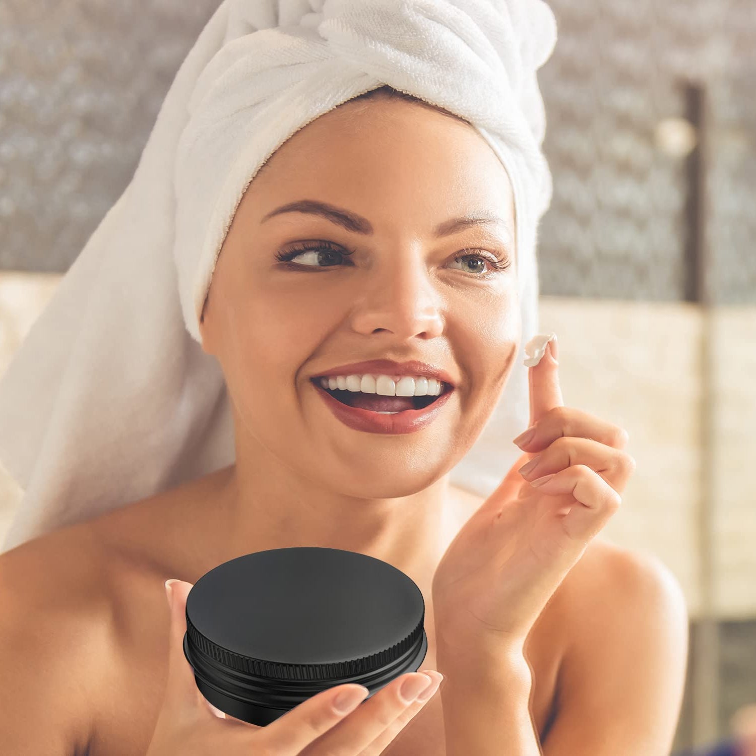 20 Pcs 2 Ounce Aluminum Tin Jars Containers Leak Proof Cosmetic Tin Jars Containers Round Screw Lids for Cosmetic, Salves, Balms, Lip Balm or Others, 60mL Black