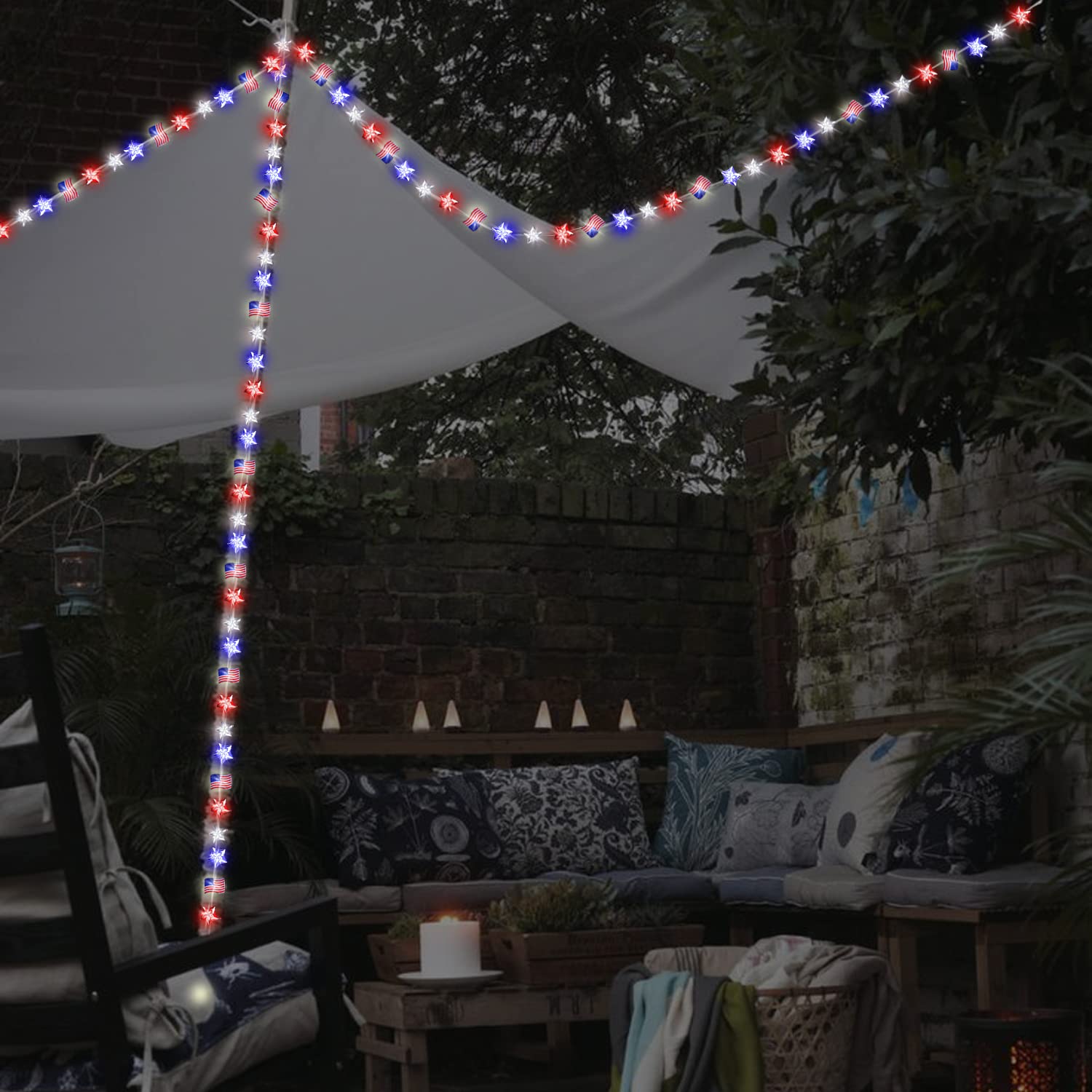 4th of July Decorations Lights, 13FT 40LED Lights Battery Operated Remote Timer USA Flag Fairy Light for Indoor Home Independence Day Memorial Day Fourth of July