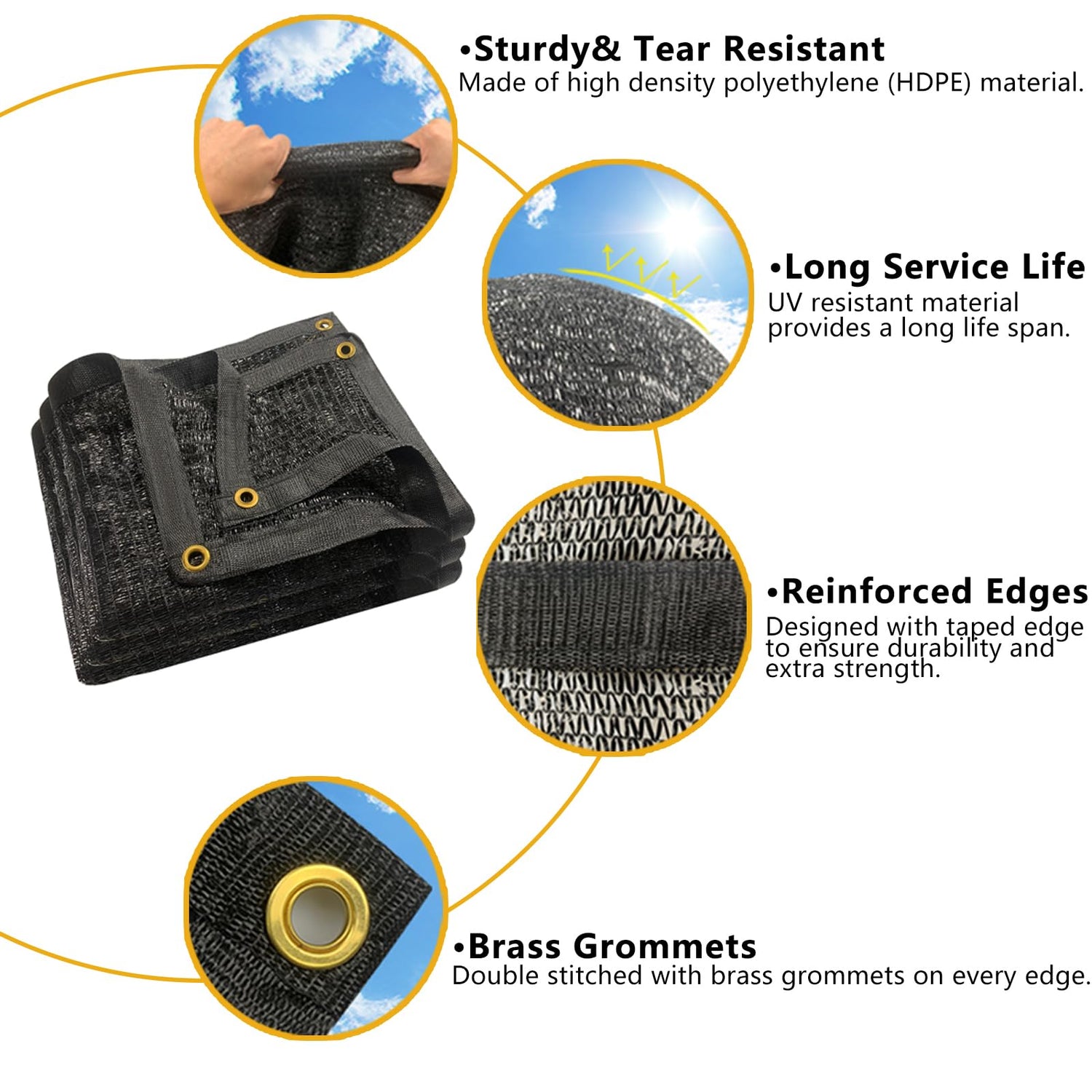 - 90% Shade Cloth:Our shade cloth provides 90% UV protection, effectively blocking most sunlight while allowing air and water to pass through. Garden shade cloth creates a cool, shaded environment ideal for people, pets, and plants, reducing heat, regulating temperature, and protecting against extreme weather. With excellent heat insulation, shade cloth for plants provides a refreshing outdoor retreat, shields gardens from excessive sunlight, and safeguards greenhouse and plants from sun damage