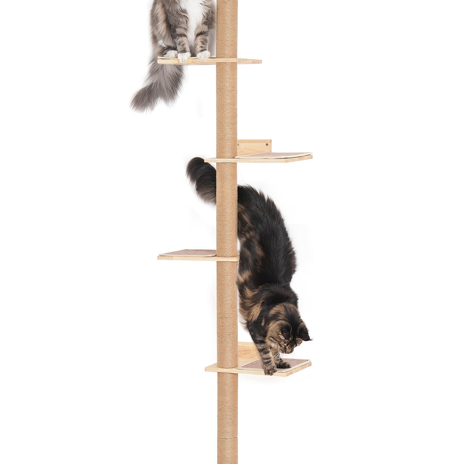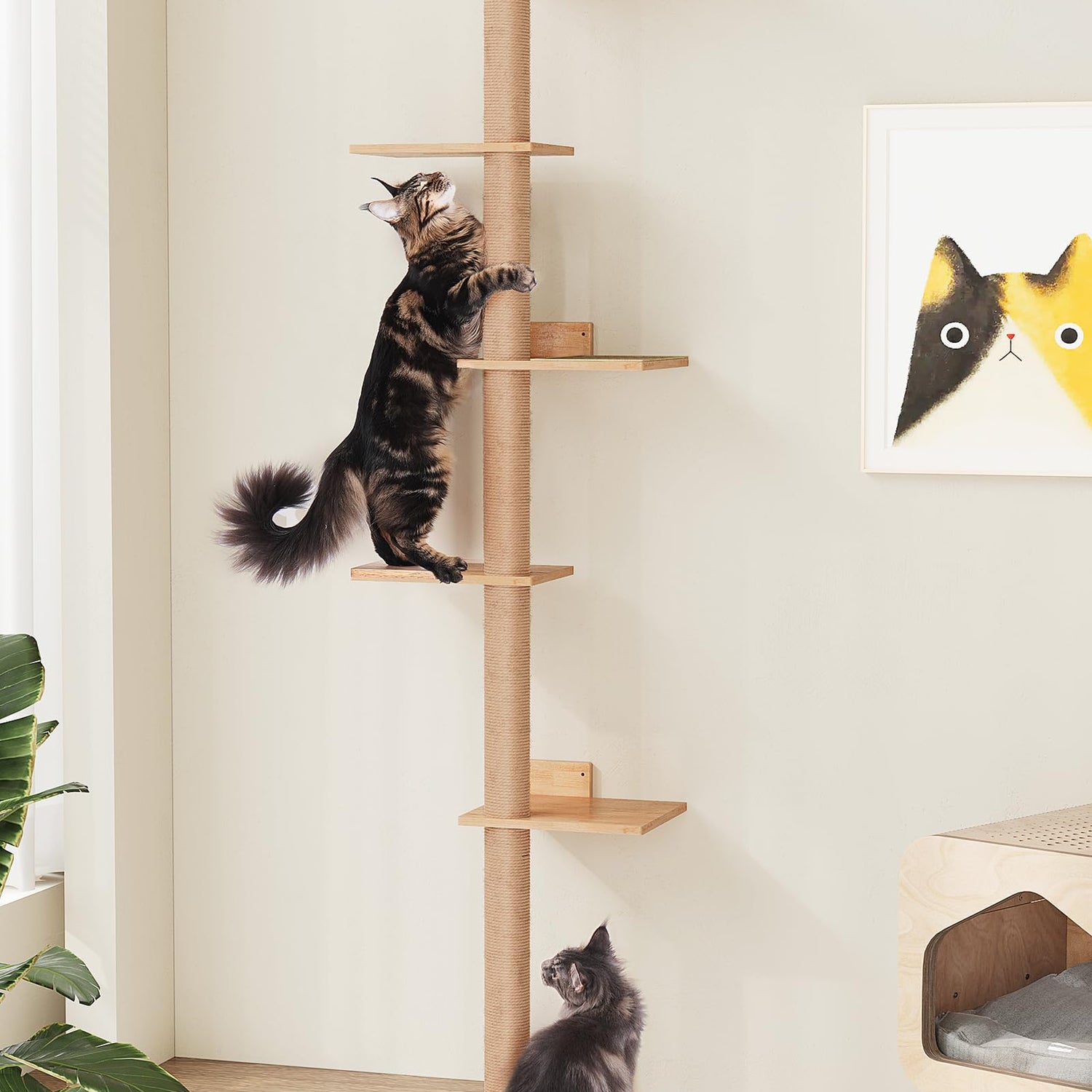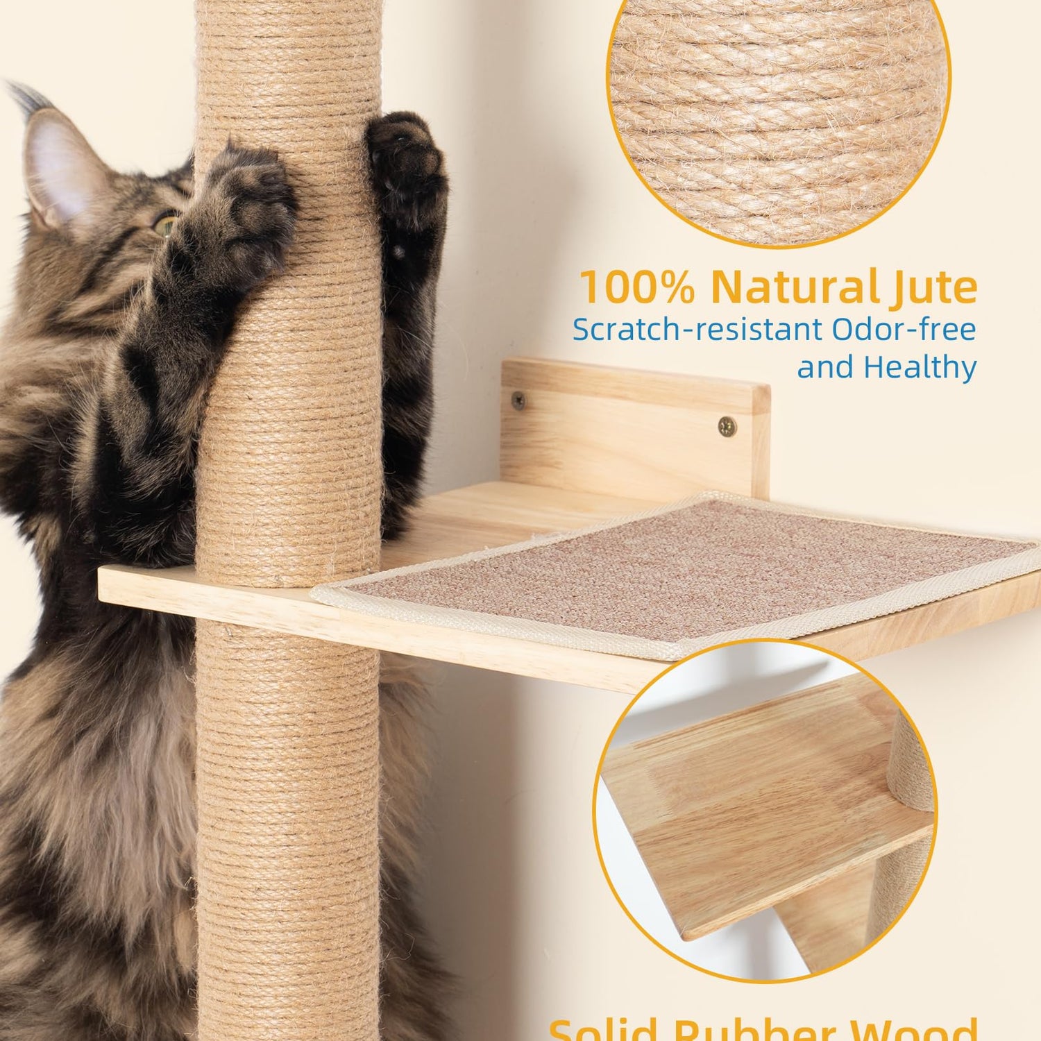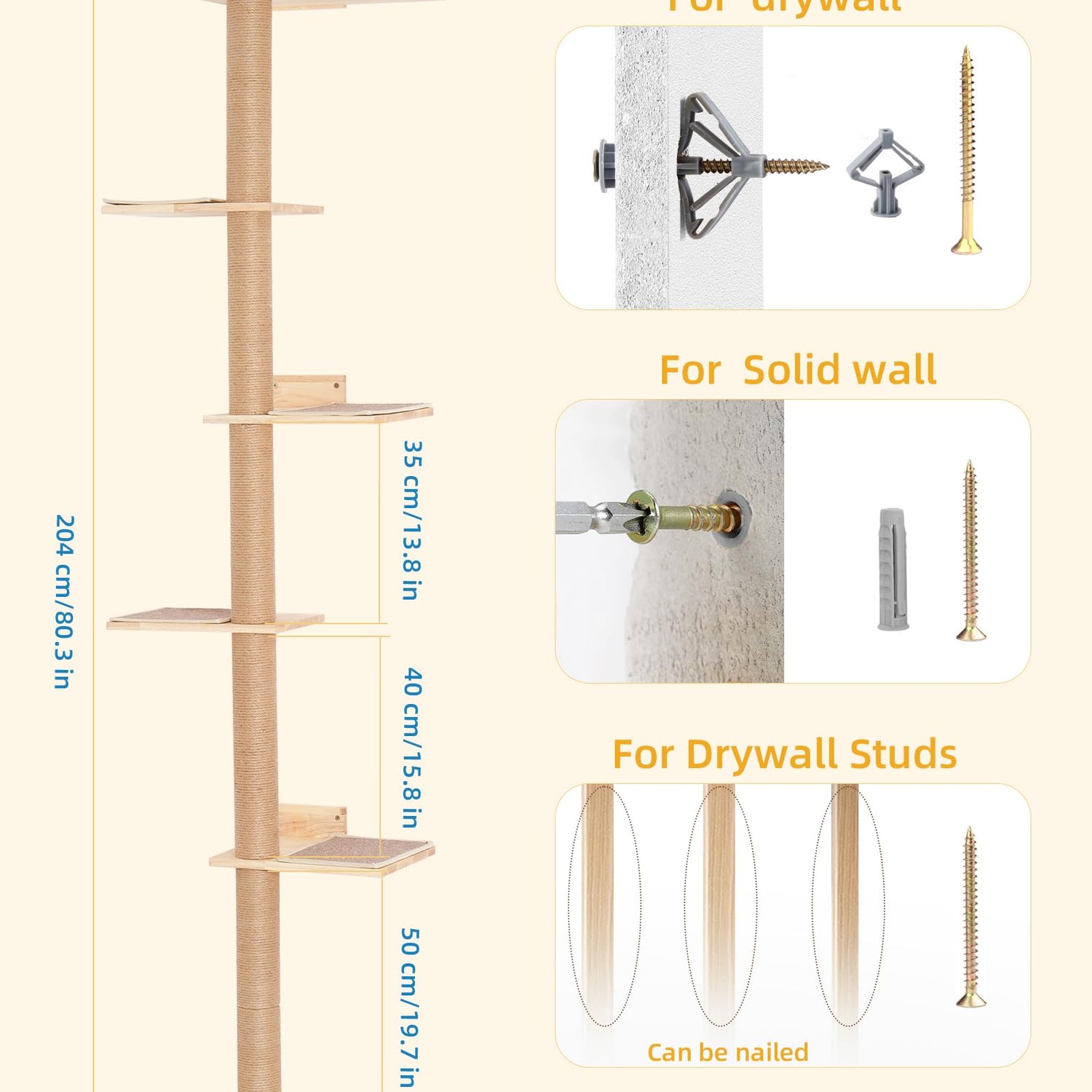 - 4. Simple Home Decor--- Crafted from heavy-duty rubberwood, this 80.3inch mordern wall mounted cat tower floor to ceiling is both sturdy and aesthetically pleasing with natural wood texture, enhancing any room as stylish cat wall furniture